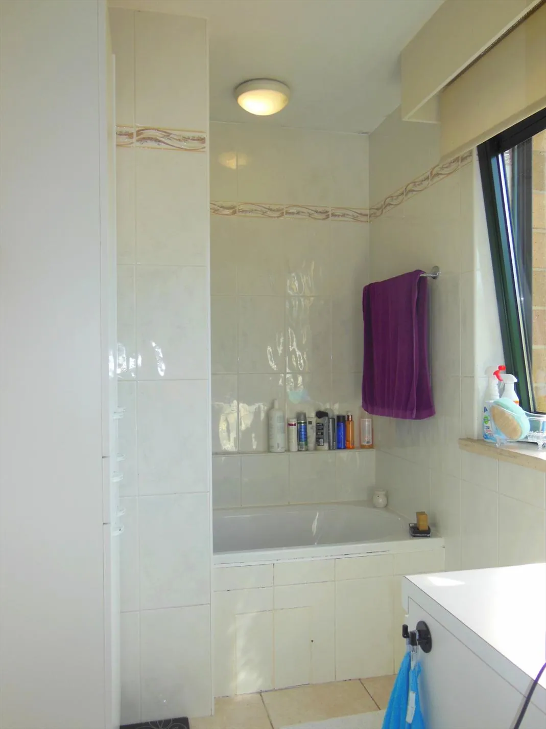 Dit appartement is gelegen op de gelijkvloerse verdieping van de residentie en omvat een inkomhal met toilet, ruime lichtrijke woonkamer met open ingerichte keuken, berging met aansluiting voor de wasmachine en droogkast, 2 slaapkamers en een badkamer met douche in ligbad en lavabomeubel. Tevens heeft dit appartement een zonnige ruime tuin en een garagebox. Wees er snel bij!