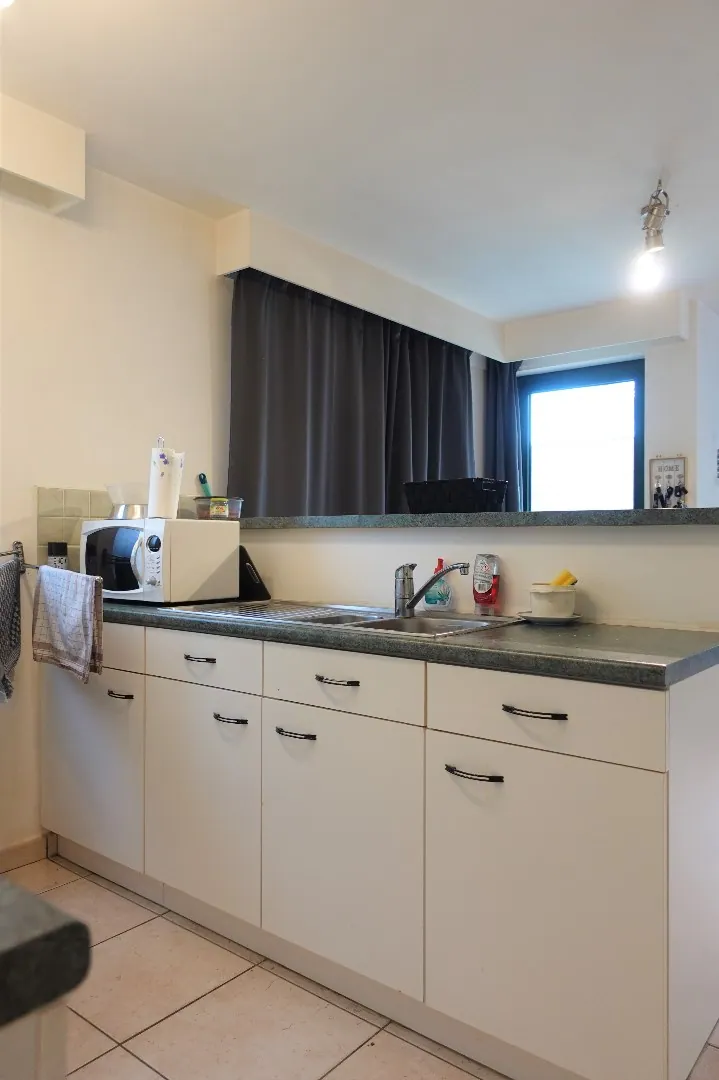 Dit appartement is gelegen op de gelijkvloerse verdieping van de residentie en omvat een inkomhal met toilet, ruime lichtrijke woonkamer met open ingerichte keuken, berging met aansluiting voor de wasmachine en droogkast, 1 slaapkamer en een badkamer met douche in ligbad en lavabomeubel. Tevens heeft dit appartement een zonnige ruime tuin en een garagebox. Wees er snel bij!