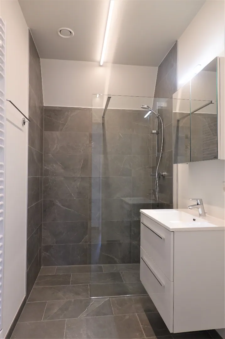 Langs de Koningin Astridlaan vinden we deze nieuwbouw residentie met 4 appartementen. Deze zijn nog in afwerkingsfase en zullen eind september bewoonbaar zijn. Het appartement heeft een inkomhal, 2 slaapkamers, toilet, badkamer met inloopdouche en leefruimte met open keuken. In de berging bevindt zich de warmtepomp als verwarmingstoestel met vloerverwarming. Op het zonnig terras heeft men een mooi uitzicht. Er is een lift aanwezig en brievenbus met code voor pakketleveringen. Wil je op een goede locatie wonen in een modern appartement boek dan snel je bezoek in!!!!!