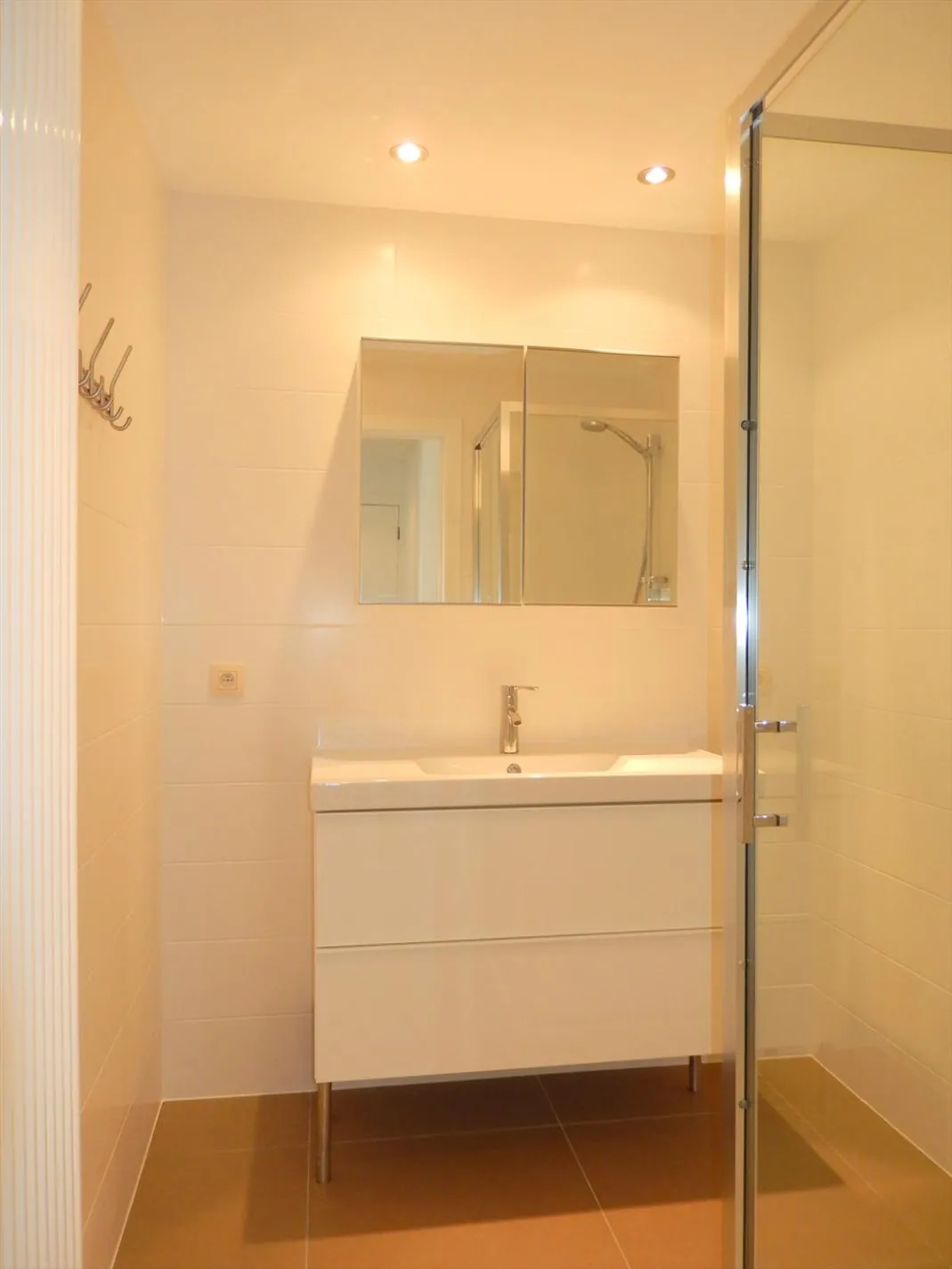 Dit mooie, ruime, moderne appartement gelegen op de eerste verdieping bevat een grote woonruimte met een open geïnstalleerde keuken met oven, kookplaat en vaatwas, badkamer met douche en lavabomeubel, twee ruime slaapkamers, een berging met aansluiting voor een wasmachine en een gigantisch zuid-gericht terras van 53m². Er is ook een garagebox aanwezig. Overal zijn er ingebouwde spotjes en alles is afgewerkt met duurzame materialen.