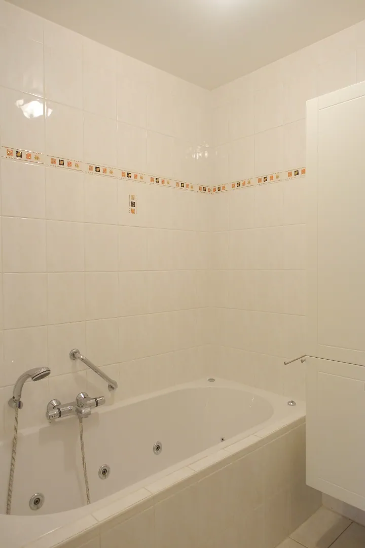 In een rustige zijstraat in het centrum van Gistel treffen we dit mooie appartement aan, op wandelafstand van alle voorzieningen. Het appartement is voorzien van dubbele beglazing met PVC schrijnwerk, centrale verwarming op aardgas en is uitgerust met gordijnen/verduistering. Het pand wordt ingedeeld in ruime inkomhal met ingemaakte kastenwand, een ruime technische berging, een lichtrijke leefruimte, half-open keuken ingericht met alle toestellen, een nachthal, een apart toilet, de badkamer met ligbad en douche, 2 ruime slaapkamers en een gezellig terras. Tot slot hoort er een private kelderberging bij het appartement en een garagebox. Neem snel contact op met ons kantoor voor een bezoek aan dit leuke appartement!