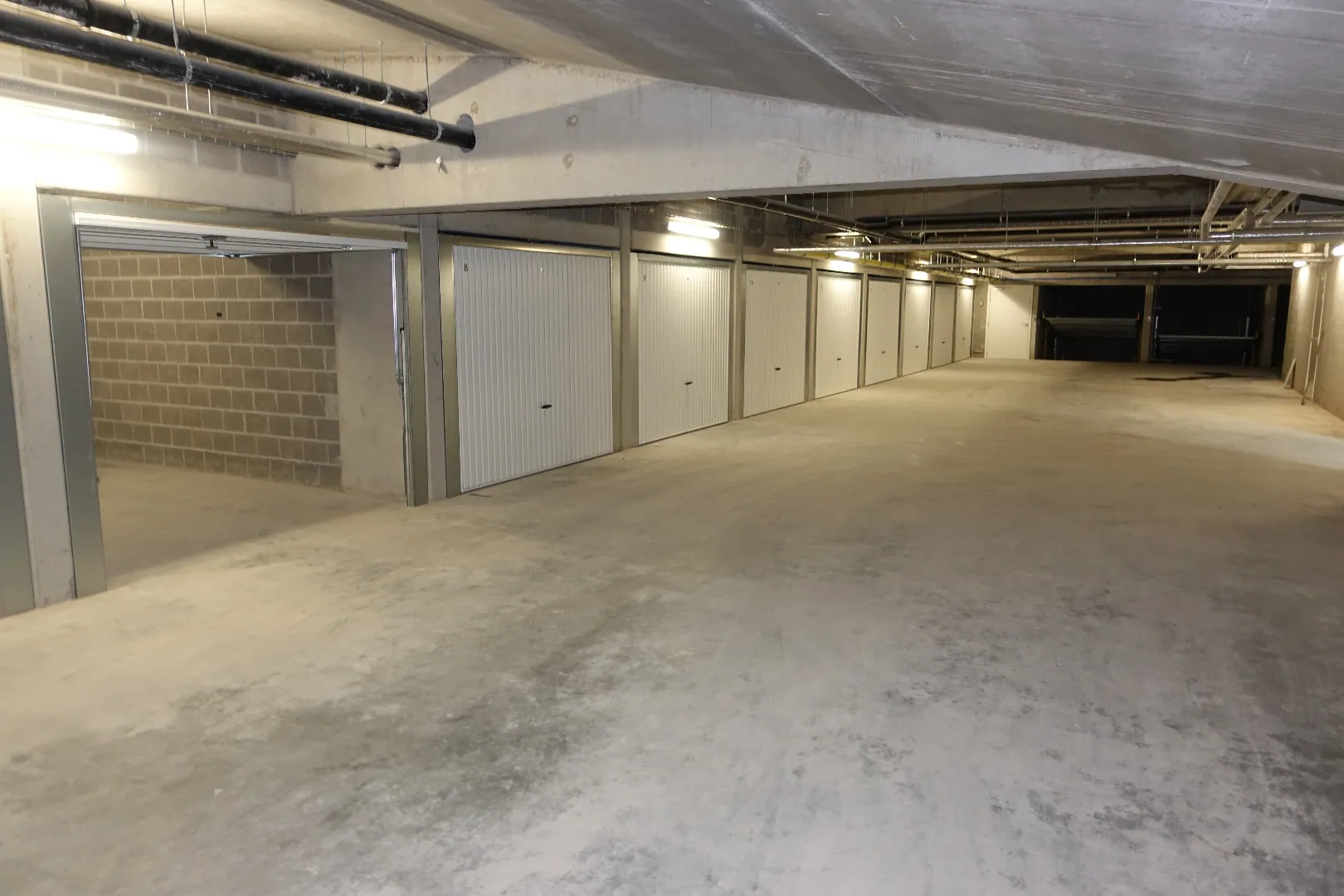 Er is ook een ondergrondse garage die samen verhuurd wordt met het appartement (660€ + 65€ voor de garage). In de kelder is er ook een gemeenschappelijke fietsenberging en vuilnisberging.