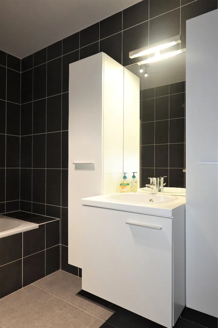 Net buiten het centrum van Gistel vinden we dit mooi afgewerkt appartement. Achteraan is er een privé-autostaanplaats en in het gebouw nog een fietsenberging. Men kan het appartement bereiken via de trap of lift. Via de ruime inkomhal kan men naar de leefruimte met aansluitend de volledig geïnstalleerde keuken, er is ook een zonnig terras. Achteraan hebben we 2 ruime slaapkamers/bureau met ingemaakte kasten, een apart toilet en een mooie badkamer met bad/douche.
