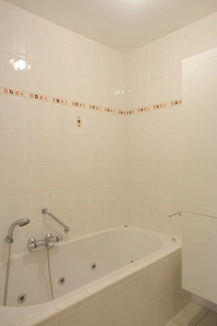 In een rustige zijstraat in het centrum van Gistel treffen we dit mooie appartement aan, op wandelafstand van alle voorzieningen. Het appartement is voorzien van dubbele beglazing met PVC schrijnwerk, centrale verwarming op aardgas en is uitgerust met gordijnen/verduistering. Het pand wordt ingedeeld in ruime inkomhal met ingemaakte kastenwand, een ruime technische berging, een lichtrijke leefruimte, half-open keuken ingericht met alle toestellen, een nachthal, een apart toilet, de badkamer met ligbad en douche, 2 ruime slaapkamers en een gezellig terras. Tot slot hoort er een private kelderberging bij het appartement en een garagebox. Neem snel contact op met ons kantoor voor een bezoek aan dit leuke appartement!