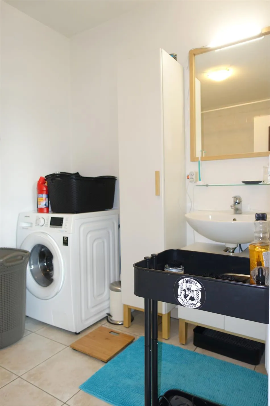 Instapklaar appartement gelegen op de eerste verdieping te Jabbeke. Dit appartement omvat een lichtrijke woonkamer, een open keuken, 2 slaapkamers, een bureau/dressing die ook kan dienen als kinderkamer en een badkamer met douche in ligbad en aansluiting voor een wasmachine. Via de woonkamer is er toegang naar het terras! Het appartement is gelegen dichtbij winkels, openbaar vervoer en invalswegen. Er is een mogelijkheid om een garagebox te huren achteraan het gebouw. Kom snel dit appartement ontdekken!