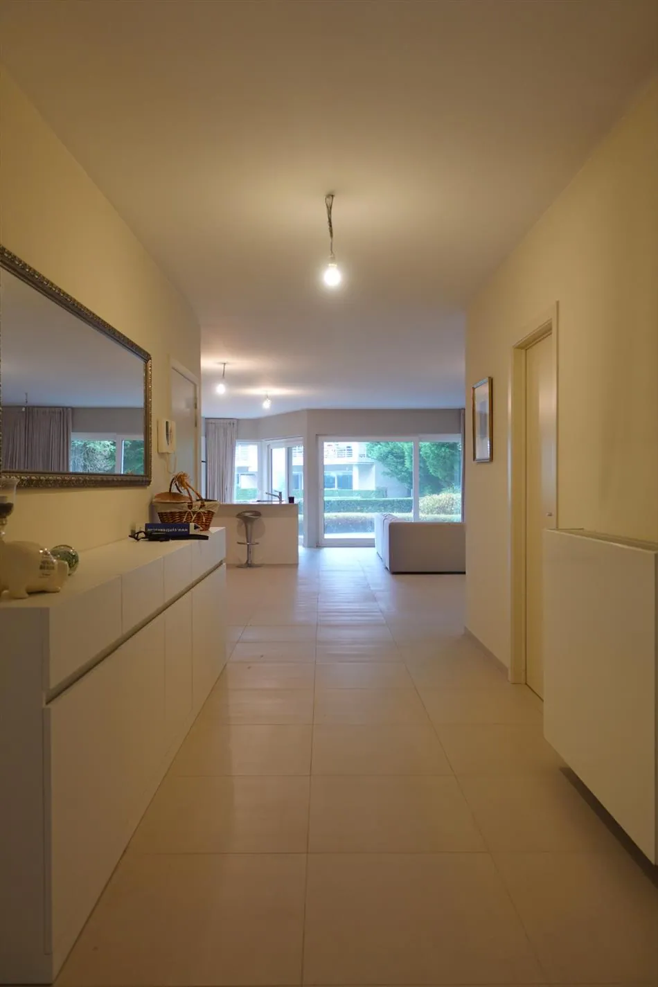 Op een uiterst rustige ligging, pal in het centrum van Jabbeke, treffen we het privaat woondomein 'Green Garden' aan. Het domein beschikt over 2 deelgemeenschappen en geniet van een prachtig aangelegde binnentuin. Het appartement is gelegen in Residentie Wimbledon op het gelijkvloers, op de hoek die het verst afgelegen is van de hoofdingang. Het appartement werd kwalitatief afgewerkt en wordt ingedeeld in een ruime inkomhal, een grote lichtrijke leefruimte met toegang tot het terras vooraan, de aparte keuken met zicht op de binnentuin, de nachthal, de badkamer en 2 slaapkamers waarvan 1 met toegang tot terras achteraan (4,25m²). In de huurprijs zit een garagebox inbegrepen. Neem snel contact op met ons kantoor en plan uw bezoek in!