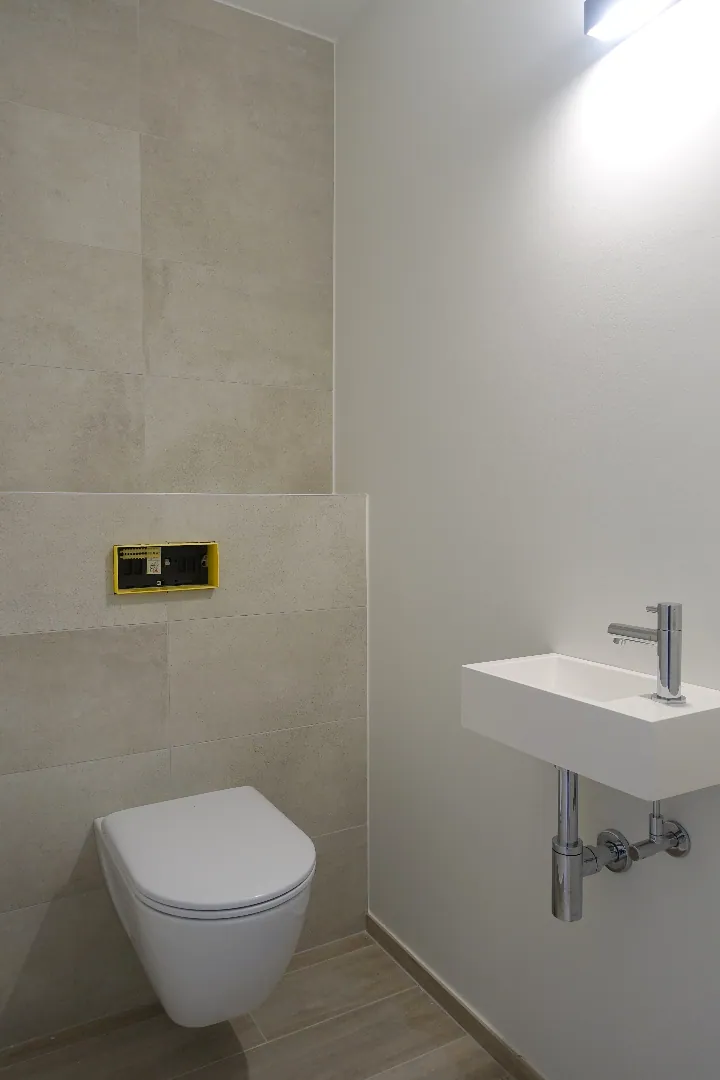 Dit kwaliteitsvol afgewerkt prachtig nieuwbouw appartement met zonnig dakterras (22m²) bestaat uit een ruime lichtrijke living met open volledig ingerichte keuken, 2 slaapkamers, badkamer met ligbad en aparte regen-inloopdouche, grote berging/wasplaats, toilet, lift. De garage met elektrische poort en fietsenberging liggen achter het gebouw.