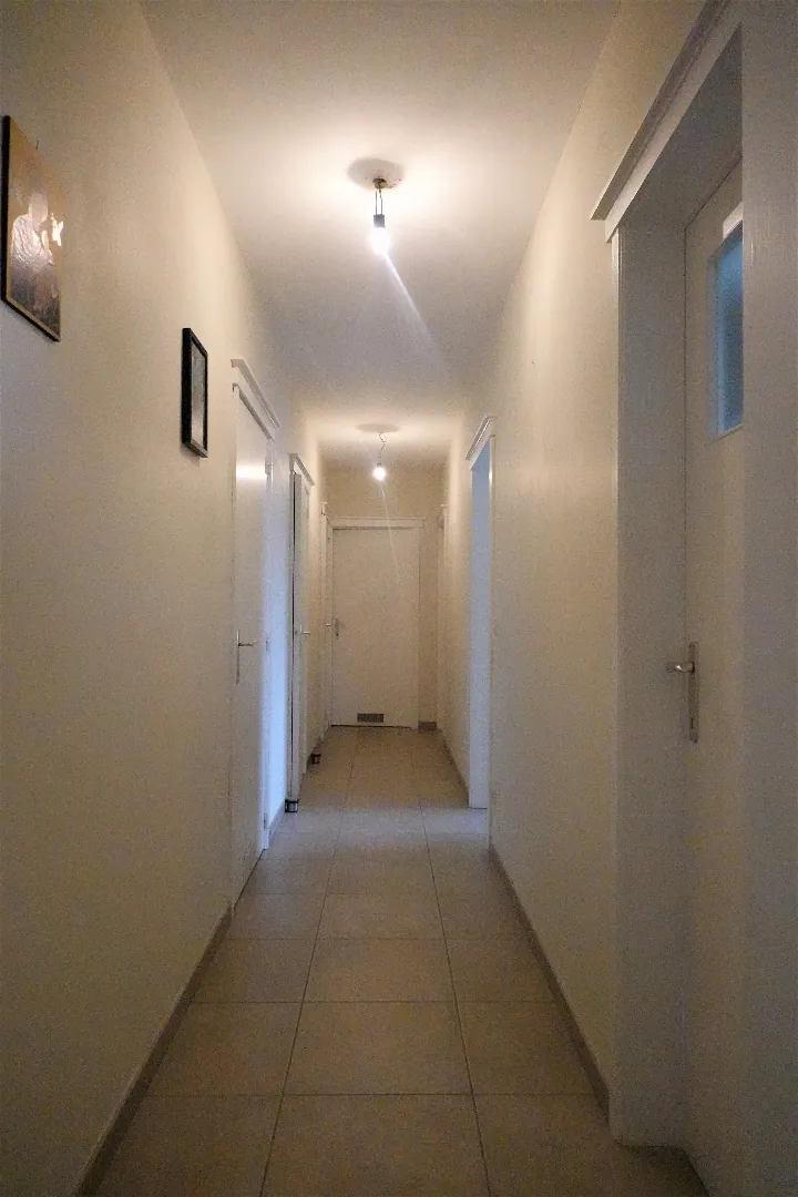 Dit appartement met een oppervlakte van +/- 105m² is volledig instapklaar! Het omvat een inkomhal, een ruime lichtrijke woonkamer, een open keuken met koelkast en kookplaat, een berging, een wasplaats, 3 slaapkamers en een badkamer met dubbele lavabo en douche. Er is een zonnig terras van 12 m² aanwezig. Achteraan het gebouw is er een garagebox inbegrepen in de prijs. Voor de snelle beslissers!