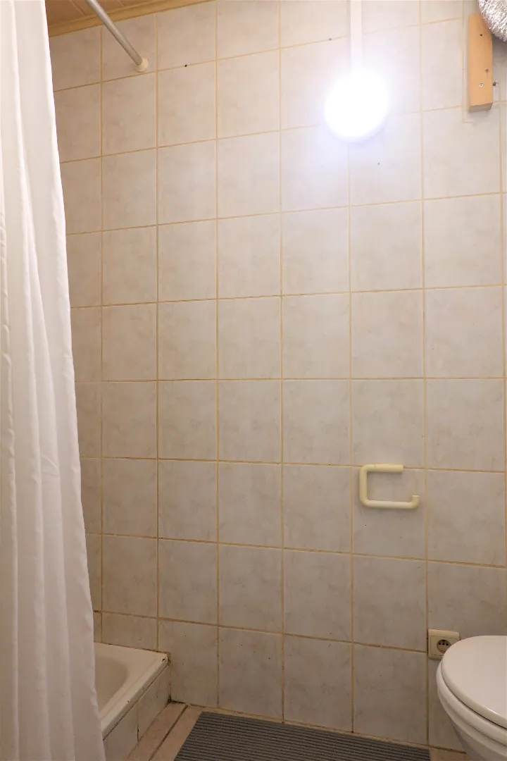 In het centrum van Ruddervoorde vinden we deze knusse studio op het gelijkvloers. De studio werd volledig geschilderd en op punt gezet. We delen in als volgt; inkom, woonkamer, keuken, 1 slaapkamer en badkamer met douche en toilet.