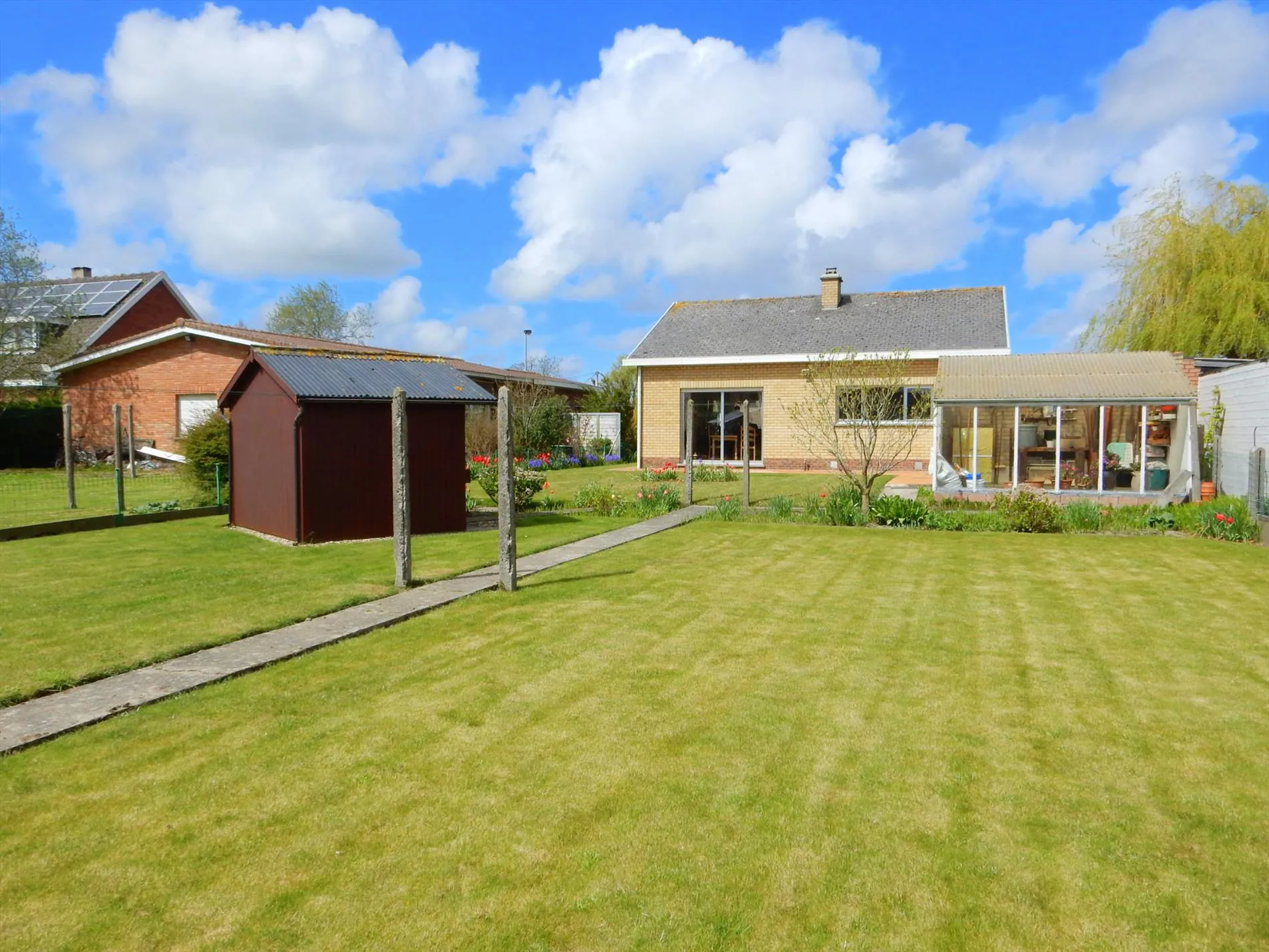 Deze woning is gelegen op een oppervlakte van meer dan 750 m² en heeft een mooie aangelegde zonnige tuin! De bungalow omvat een inkomhal met gastentoilet, een ruime woonkamer met een sierhaard en parket, een geïnstalleerde keuken, een badkamer met ligbad en lavabo, 2 ruime slaapkamers, een grote garage met wasplaats en een grote, droge kelder! Overal zijn er elektrische rolluiken aanwezig. Kom snel deze instapklare woning bezoeken!