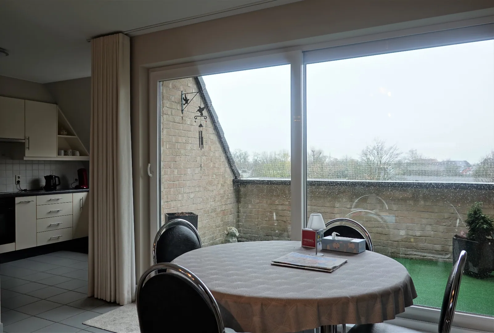 In het centrum van Gistel vinden we dit mooi afgewerkte dakappartement met een opp. van 126m². Via de inkomhal komen we in de ruime woonkamer met lichtinval langs beide zijden, via een schuifraam kan je genieten op het zonnig terras. Aansluitend hebben we de praktische keuken, alle toestellen voorzien. Langs de nachthal kun je het toilet bereiken, de 3 slaapkamers, berging en badkamer.