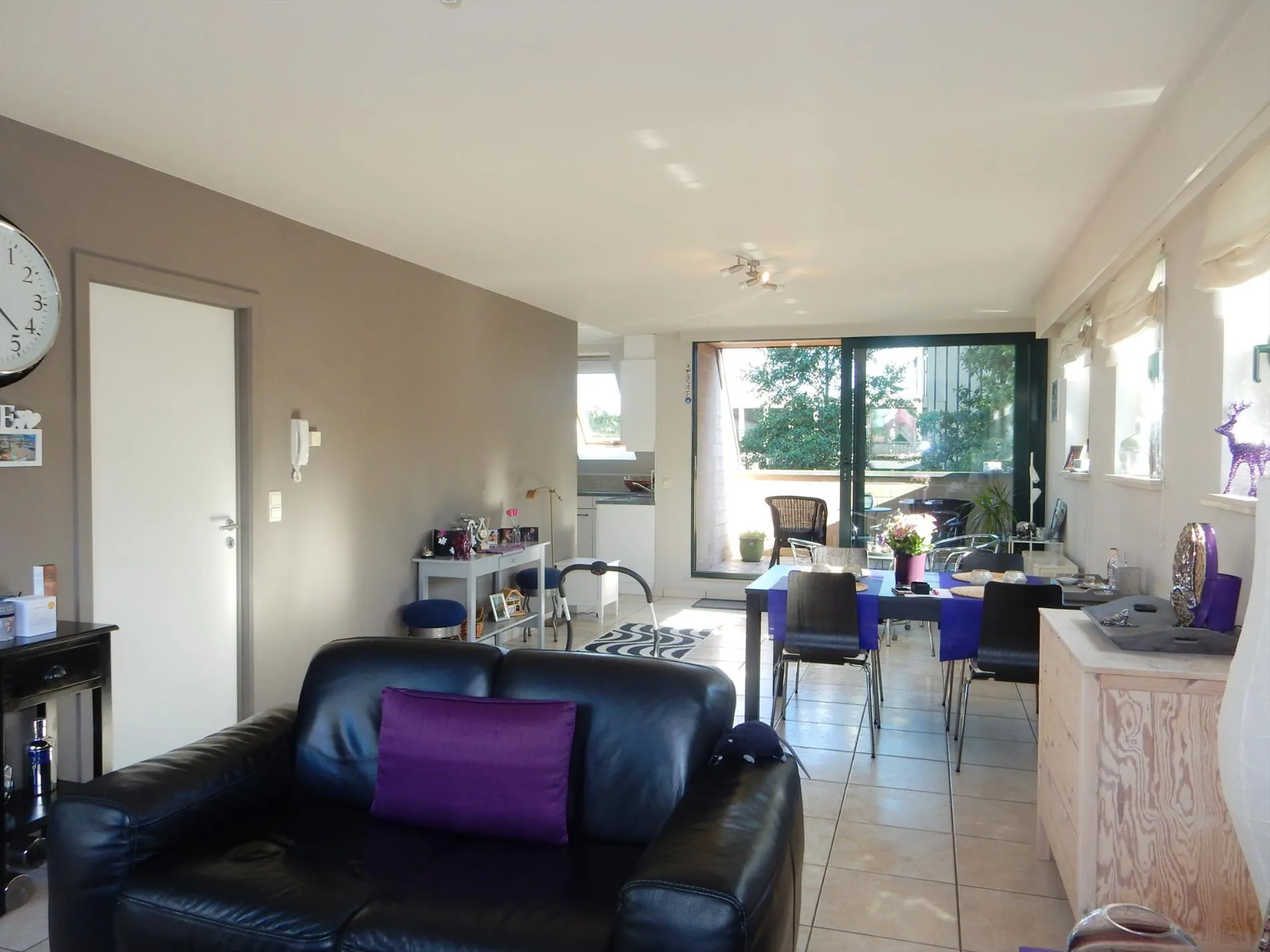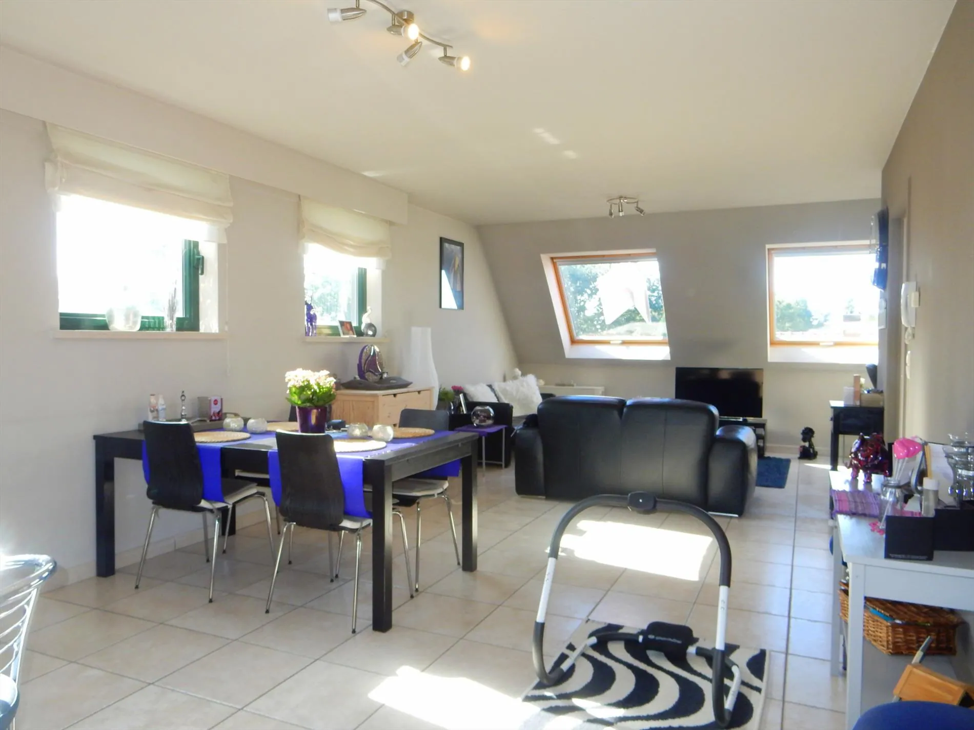 Dit zéér ruim appartement omvat een inkomhal met afzonderlijk toilet, ruime woonkamer met veel lichtinval en aanpalend een terras, ingerichte keuken met bijhorende berging. De bovenverdieping is ingericht met een nachthal, 2 slaapkamers, een wasplaats en een badkamer met dubbel lavabo, ligbad en douche.