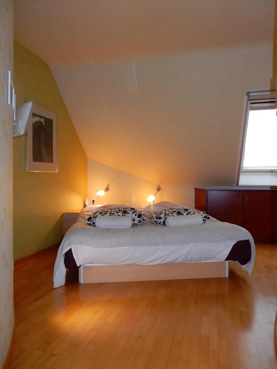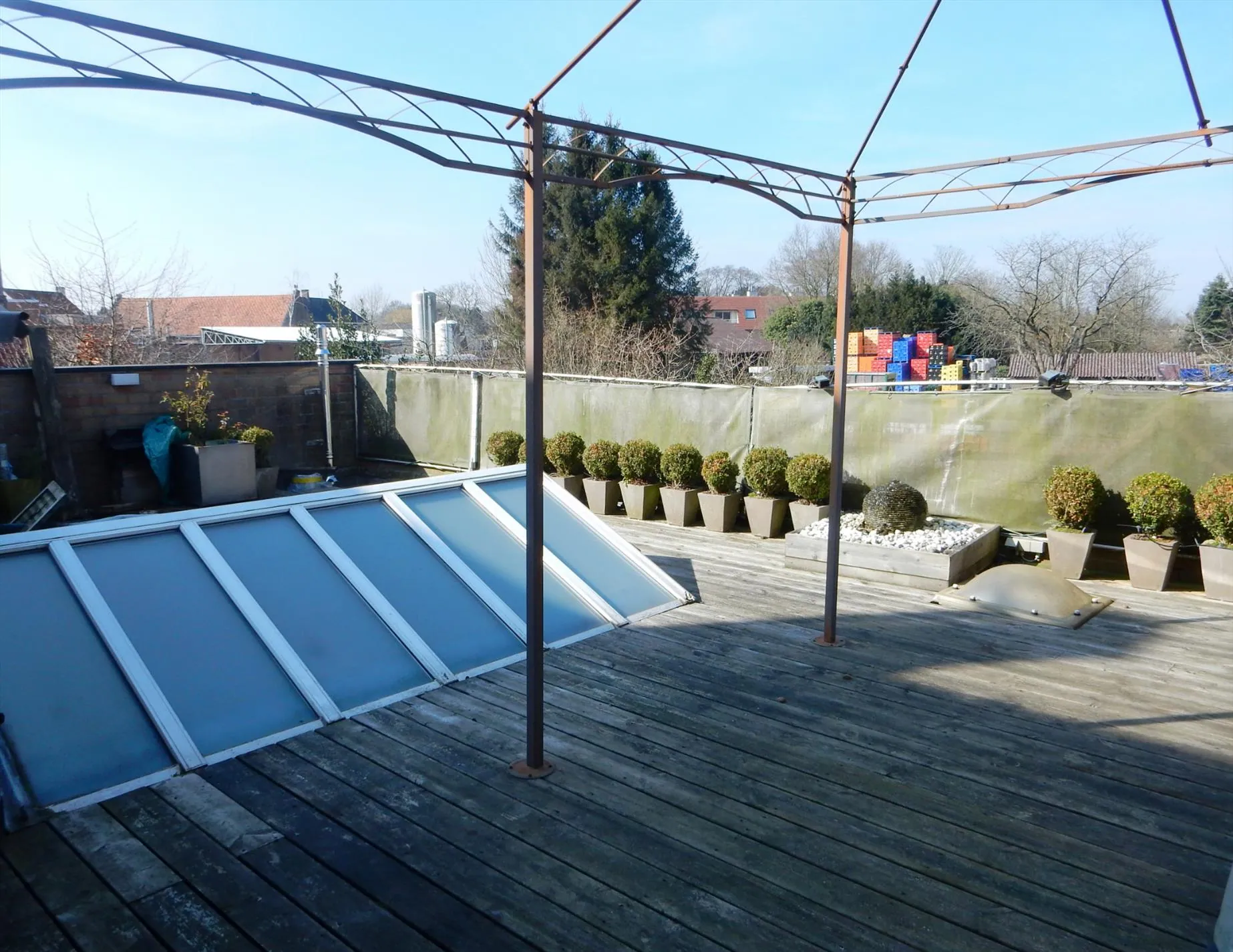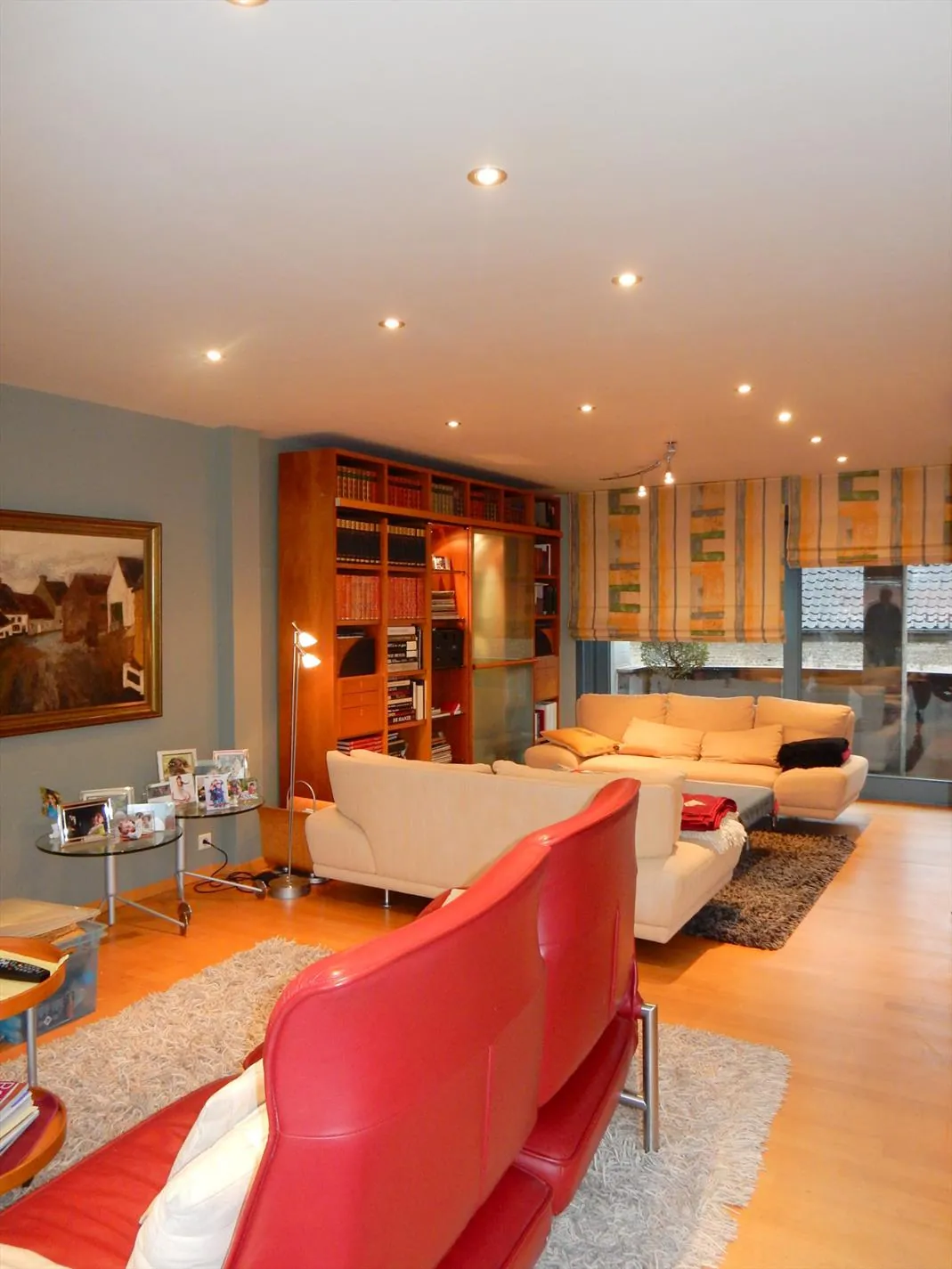 Dit duplexappartement is gelegen in het centrum van Jabbeke en omvat een inkomhal met berging, gastentoilet en vestiaire, een ruime gezellige woonkamer met bureelgedeelte met een speksteenkachel, een eetkamer en een geïnstalleerde keuken. Boven is er een nachthal, 2 ruime slaapkamers waarvan 1 met een badkamer met bubbelbad, bidet en lavabo met lavabomeubel, een kinderkamer, een douchekamer en een apart toilet. Op de zolder is er een sauna aanwezig met een zitbad en een zonnebank. Er ligt parket en er is vloerverwarming aanwezig! Mogelijkheid tot het huren van een garagebox. Dit instapklaar en perfect gelegen appartement is heel fijn om te vertoeven!