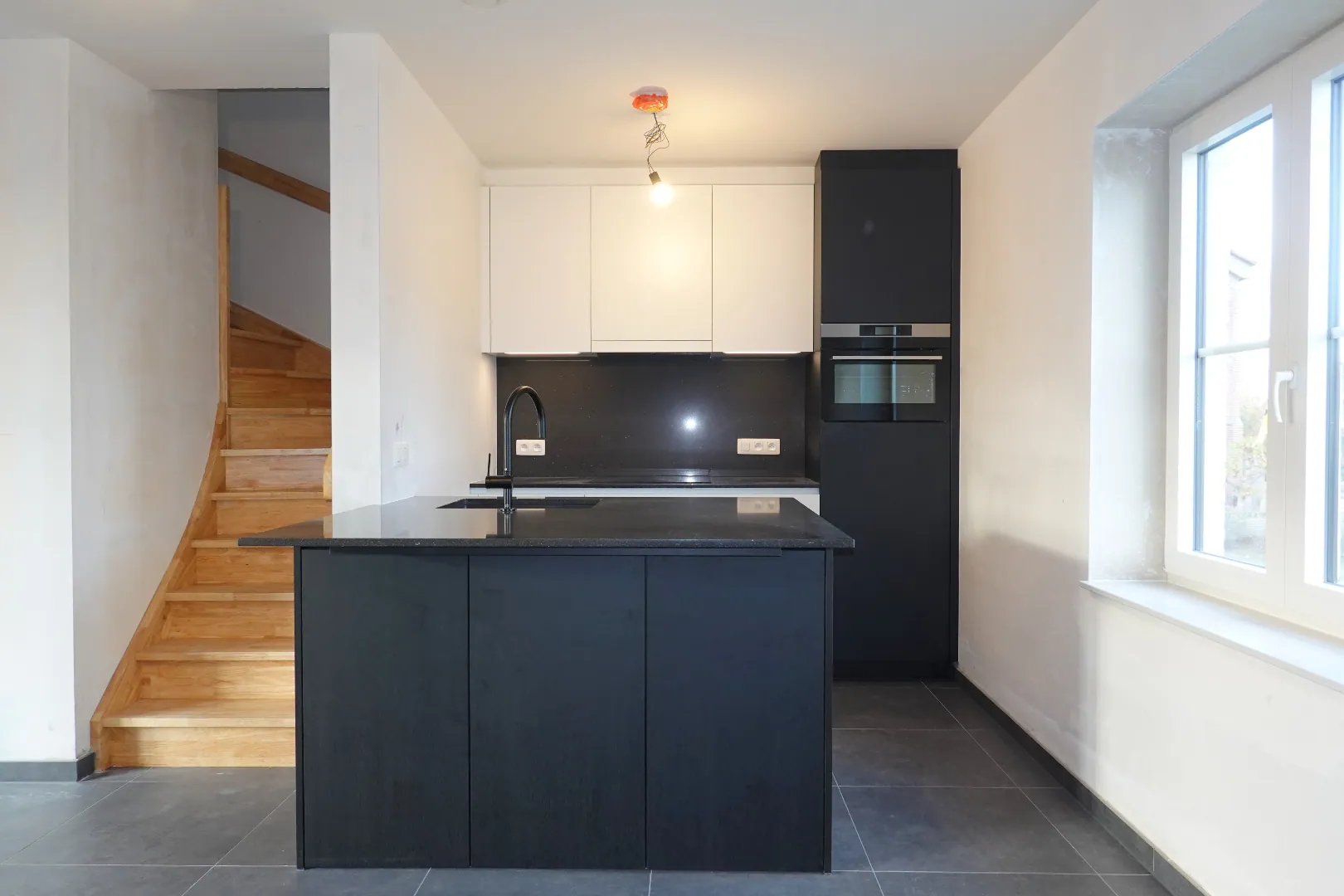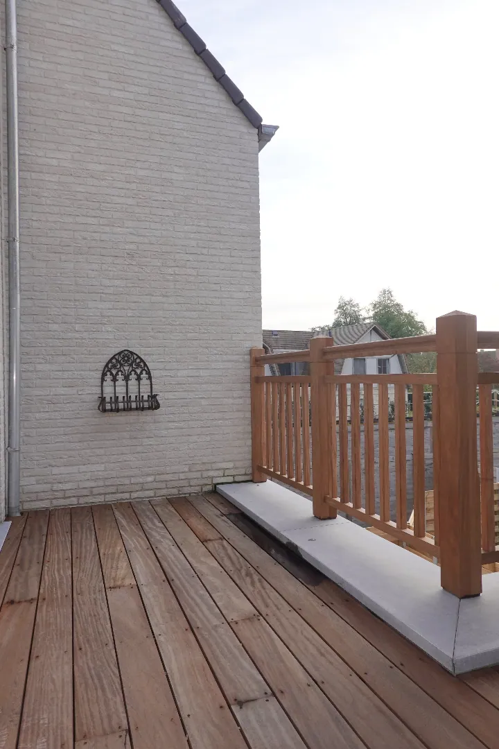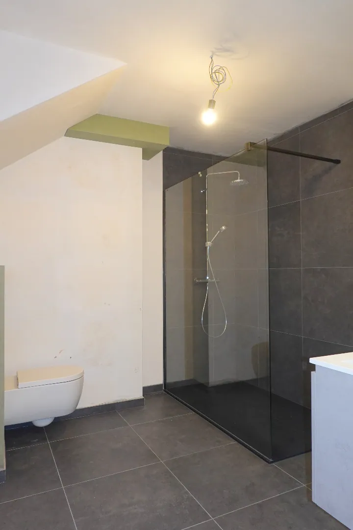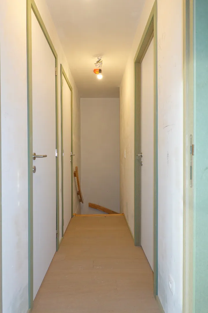 Dit appartement omvat een inkom met gastentoilet, een ruime woonkamer en een keuken die ingericht is met kwalitatieve toestellen. Onder de trap is er nog een berging aanwezig. Op het verdiep is er een ingerichte badkamer met inloopdouche, ligbad, een apart toilet, dubbele lavabo, 2 slaapkamers en een dressing. Dit appartement zal nog volledig geschilderd worden en is tevens voorzien van zonnepanelen. Autostaanplaats is inbegrepen in de prijs (kan eventueel voorzien worden met laadpaal). E-peil 40.