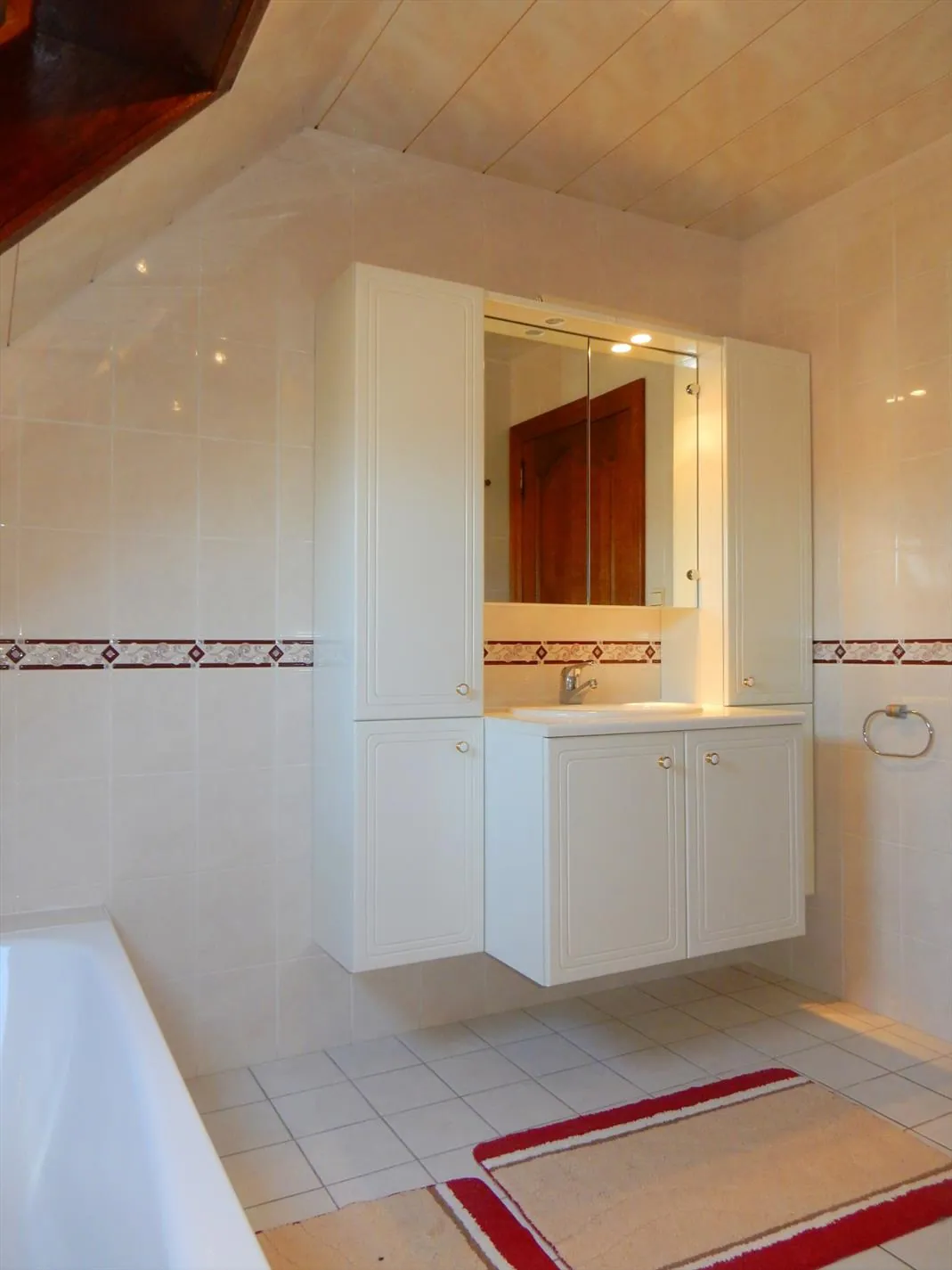 Op een rustige locatie, op wandelafstand van centrum Jabbeke en op slechts 1min van de oprit van de autosnelweg, huisvest deze prachtige villa afgewerkt met kwalitatieve materialen. Deze woning is gelegen op een perceel van 763m² en voorziet in alle comfort. Op de benedenverdieping vinden we een ruime inkomhal, een apart toilet, een lichtrijke woonkamer, een aparte leefkeuken, een keukenberging, een praktische wasplaats, een inpandige garage met sectionale poort en kleine berging. Op de verdieping biedt deze woning een mooie nachthal, een master bedroom van 21,26m², een badkamer uitgerust met een ligbad, een douche en een 2de toilet, een 2de en 3de slaapkamer en tot slot is de ruime bergzolder (19,76m²) toegankelijk via de valtrap. Verder geniet je als huurder van tal van parkeermogelijkheden, een zéér ruime aangelegde tuin en een 2de garagebox met zolder. Kom deze parel nu ontdekken!
