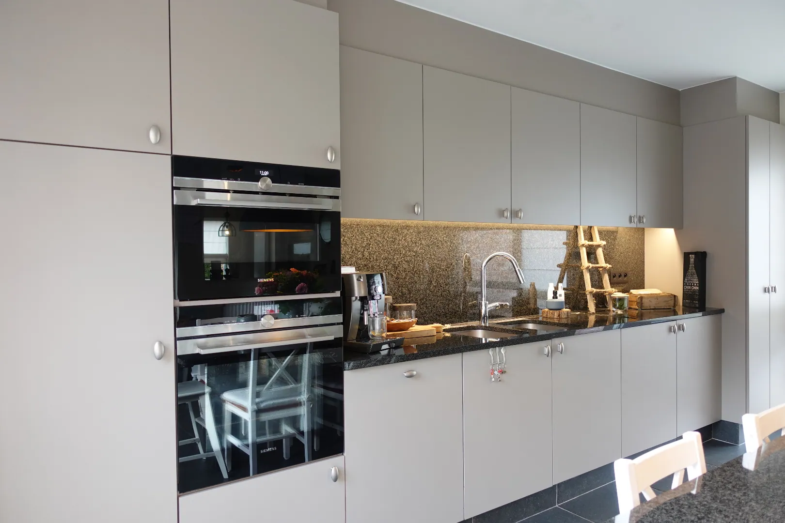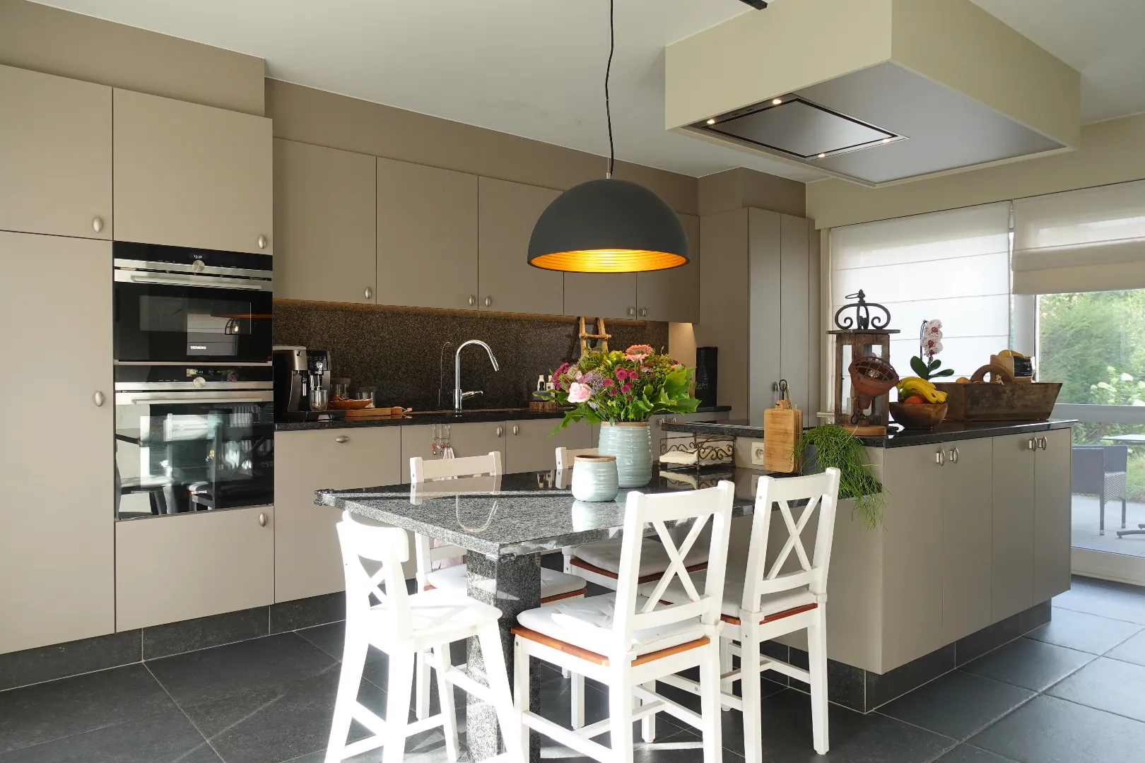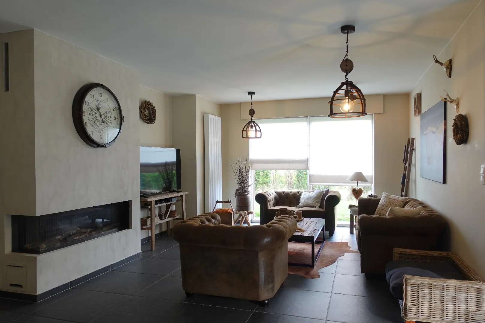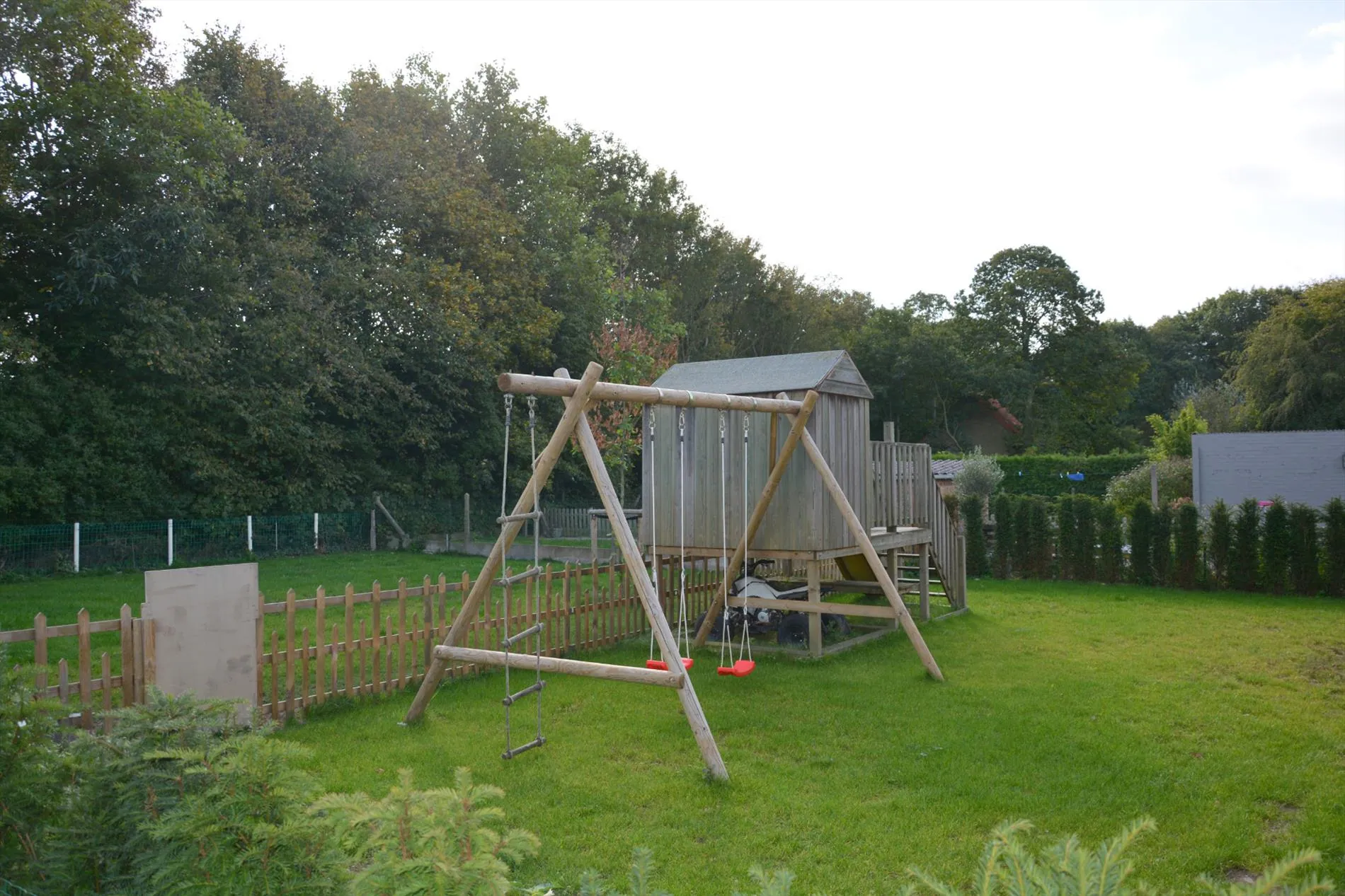 Gelegen langs de Aartrijksesteenweg te Jabbeke, op enkele minuten van alle winkels en voorzieningen treffen we deze prachtige villa aan. De woning wordt ingedeeld in een inkomhal met toilet, bureauruimte die kan ingericht worden als slaapkamer, woonkamer met lichtrijke eetplaats, volledig ingerichte keuken, wasplaats en dubbele garage. De eerste verdieping wordt ingedeeld in een nachthal, 1 badkamer met dubbele lavabo, bad en inloopdouche, 3 slaapkamers, toilet. Daarnaast is er nog een gezellige achtertuin met overdekt terras. Kom deze absolute topper snel ontdekken!