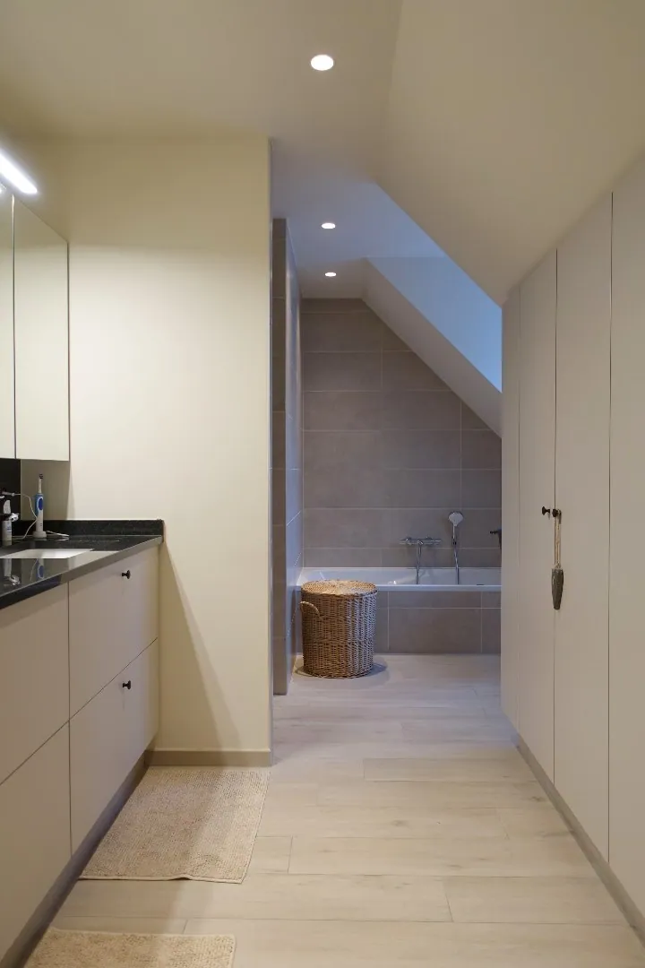 Deze prachtige villa bestaat op het gelijkvloers uit een inkomhal met vestiaire, een hele ruime lichtrijke woonkamer met gashaard, volledig geïnstalleerde keuken met berging, een bureau, een apart toilet, een wasplaats voorzien van ingemaakte kasten en een garage met automatische poort en extra bergruimte. Op de eerste verdieping bevinden zich 4 zeer ruime slaapkamers waarvan 1 slaapkamer met dressing en badkamer met ligbad, dubbele lavabo met meubel en inloopdouche alsook een apart toilet. Buiten is er een hele grote tuin met 2 terrassen en een tuinberging met een groot overdekt terras! Deze fantastische woning is volledig instapklaar, plan gerust een bezoek in aan deze unieke villa gelegen nabij grote invalswegen en dorpskern!