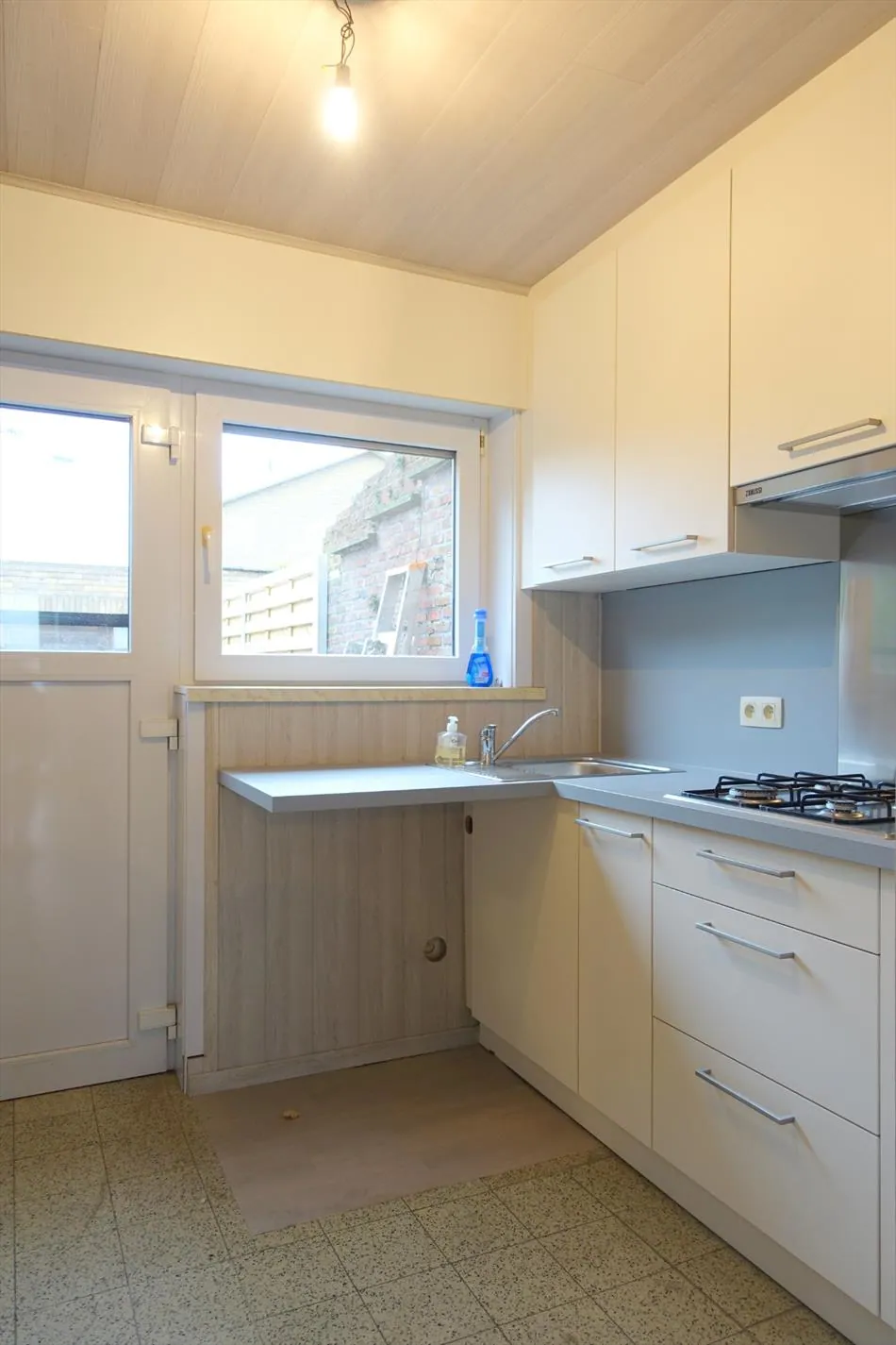 Gelegen net buiten het centrum van Gistel, op wandel- en fietsafstand van alle voorzieningen, treffen we deze gezellige woning met garage aan. De woning is ingedeeld op het gelijkvloers met een inkomhal en apart toilet, een ruime lichtrijke leefruimte met houtcassette, een vernieuwde keuken met berging. Op de verdieping treffen we twee plaatsrijke slaapkamers en vernieuwde badkamer met douche/lavabomeubel aan. Verder geniet de woning van een ruime garagebox. Tenslotte is er nog opbergmogelijkheid in de berging buiten. De woning is voorzien van een voor -en achtertuin. Kom snel deze topper ontdekken!