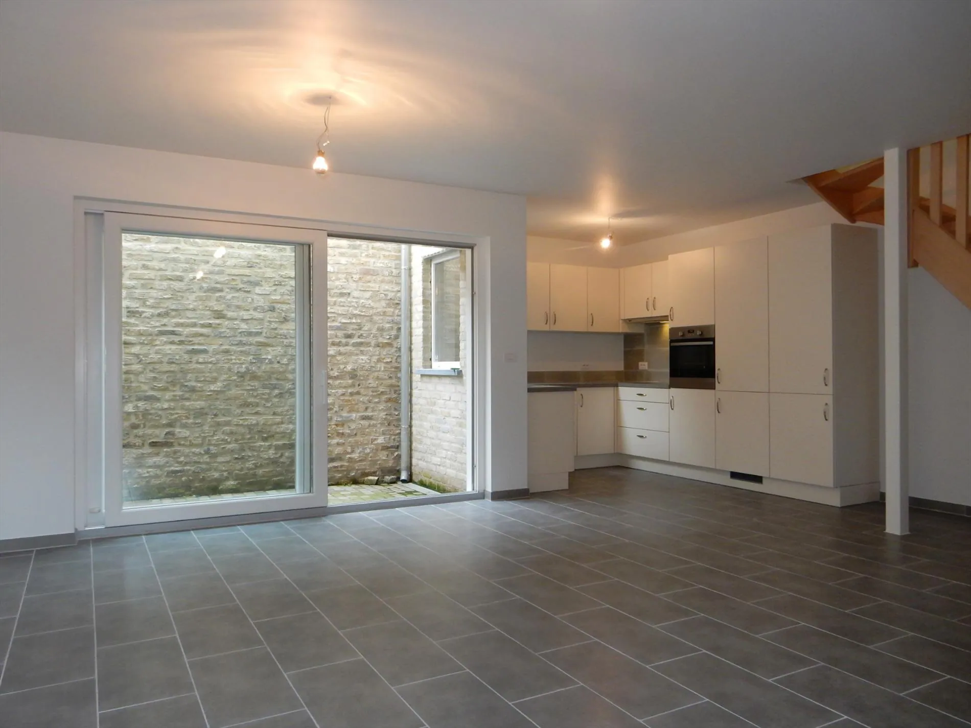 Op een uiterst charmante ligging in het centrum van Houtave, vinden we deze volledig gerenoveerde woning terug. De woning werd ingedeeld als volgt: een inkomhal met een apart toilet, een ruime lichtrijke leefruimte met open geïnstalleerde keuken en een koer. De eerste verdieping is toegankelijk via de open trap vertrekkend vanuit de leefruimte en biedt een nachthal, 3 slaapkamers, een badkamer met lavabomeubel en inloopdouche en tot slot een apart toilet. De zolderruimte is toegankelijk via de valtrap. Deze woning is een echte buitenkans voor iedereen die op zoek is naar een unieke woonst. Plan snel je bezoek in!