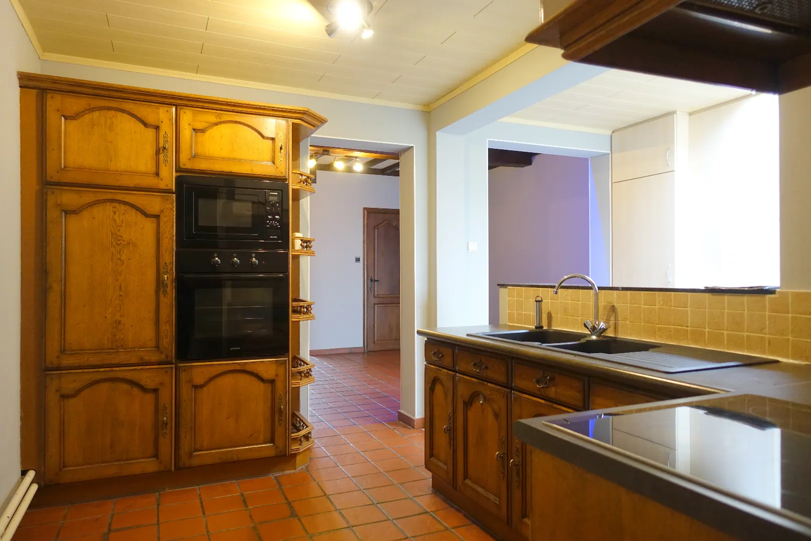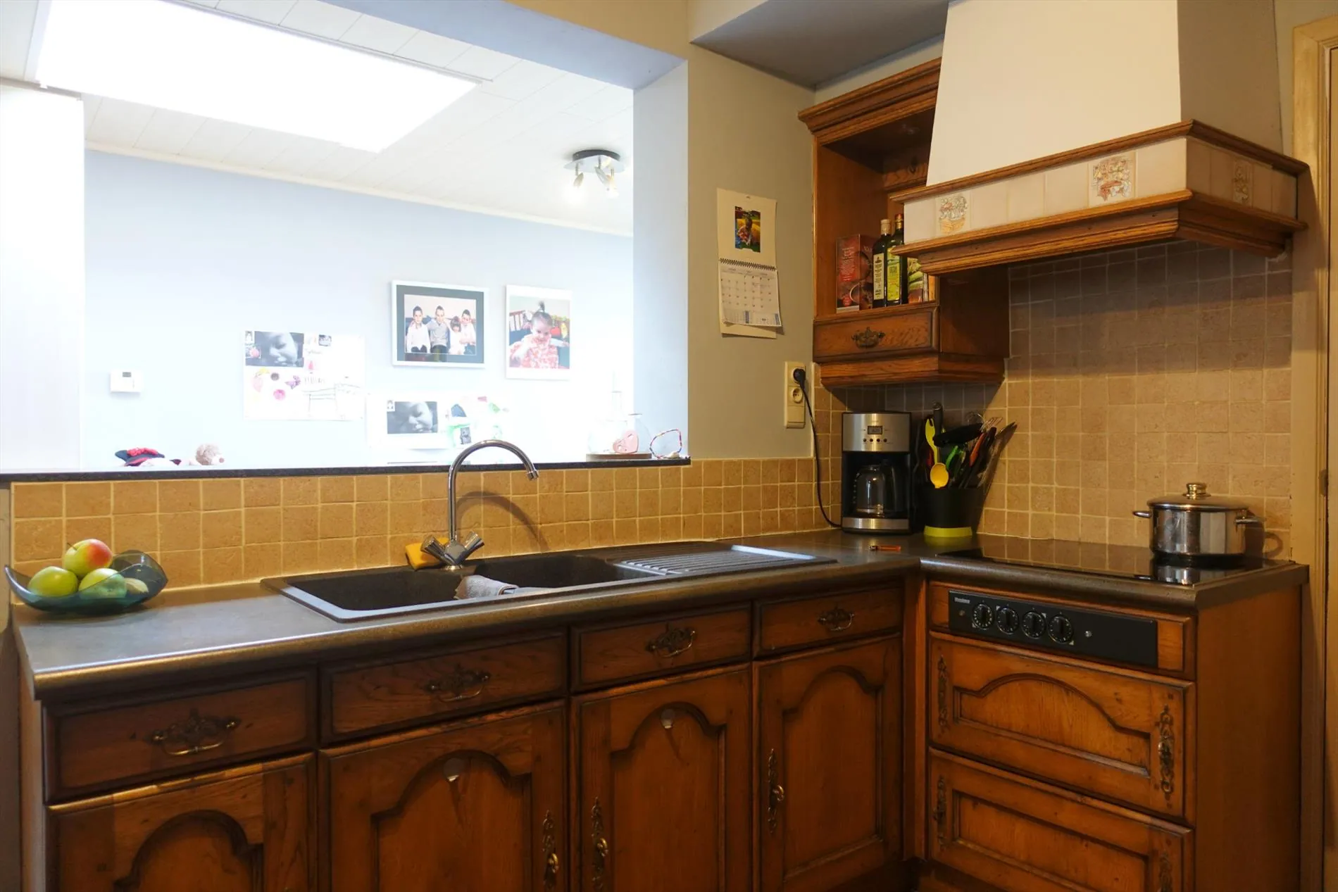 Net buiten het Dorpscentrum van Eernegem, treffen we deze halfopen woning aan op een perceel van 488m². De woning wordt samengesteld uit een inkomhal, een lichtrijke en gezellige leefruimte, een aparte leefkeuken, berging en de badkamer. De 1ste verdieping bereiken we via de trap vertrekkend uit de inkomhal en biedt plaats aan een centrale nachthal en 2 ruime slaapkamers. Op de 2e verdieping is er nog een 3e ruime slaapkamer met een kleinere ruimte aanwezig eveneens bereikbaar via een vast trap. Verder geniet deze woning van een zonnig terras met achtertuin en tuinhuis. Neem snel contact op met ons kantoor en breng een bezoek aan deze leuke woonst!