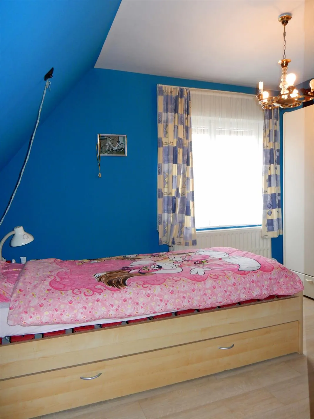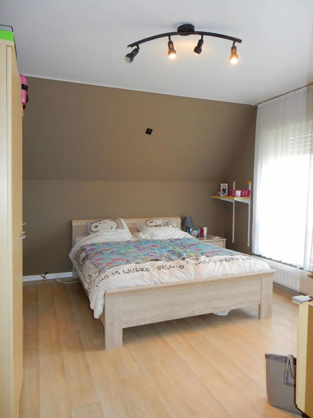 Deze woning omvat op het gelijkvloers: een inkomhal, een ruime woonkamer, een keuken, een bijkeuken, 2 garages waarvan 1 met extra berging en aansluiting voor een wasmachine. Op de eerste verdieping bevinden zich 4 ruime slaapkamers, een nachthal en een badkamer met ligbad en douche in bad. Er is een kelder een een geïsoleerde zolder aanwezig. Buiten is er een zuidgericht terras en een zonnige tuin.