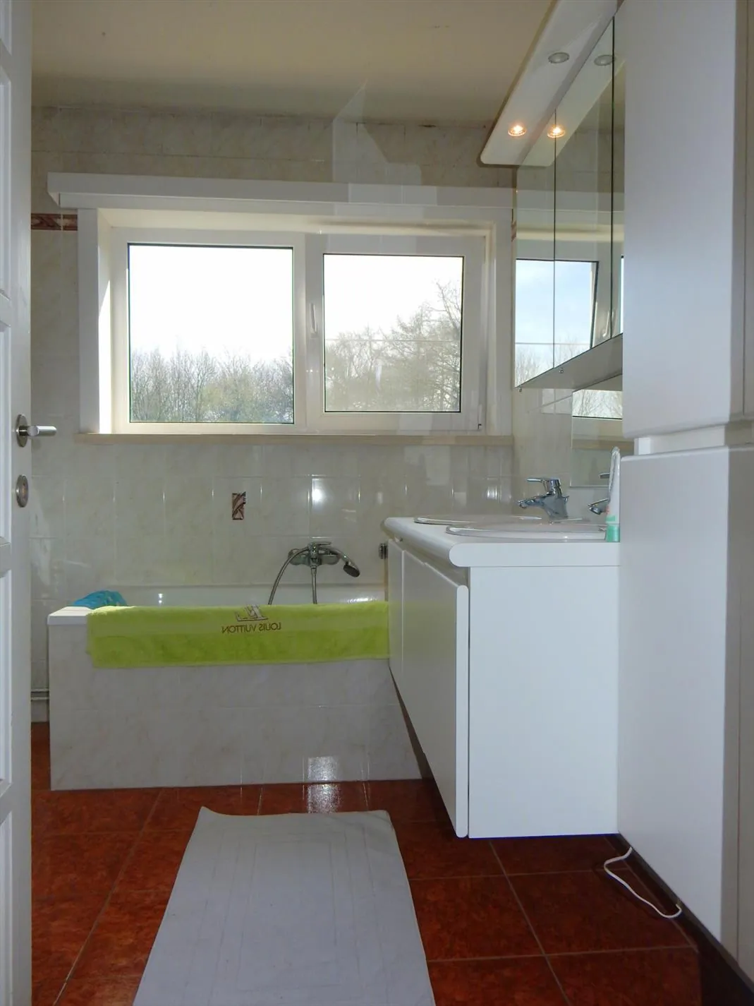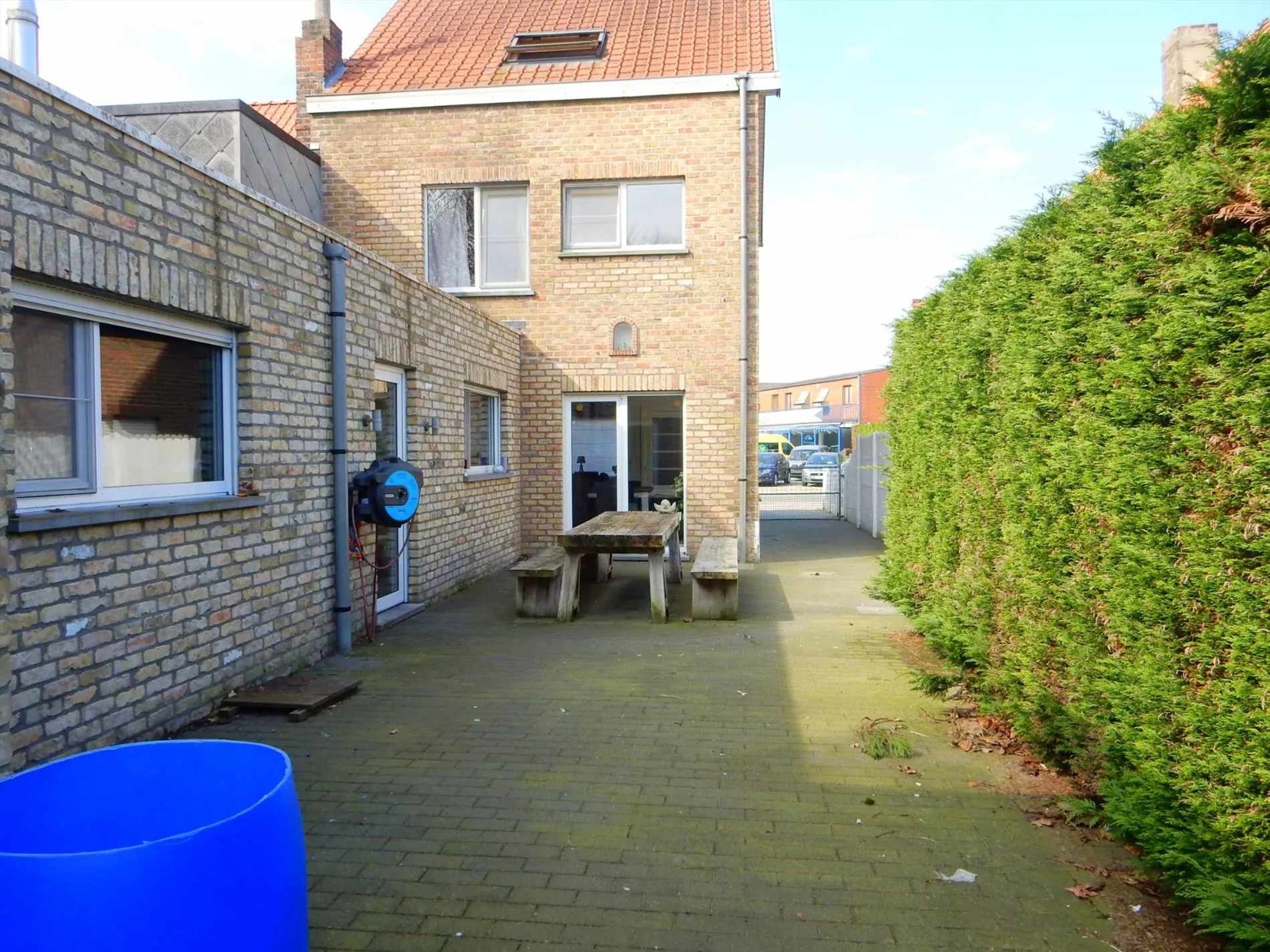 Deze half-open bebouwing is gelegen dichtbij het centrum van Jabbeke. De woning is een aantal jaar gelegen volledig gerenoveerd en is volledig instapklaar. Op het gelijkvloers is er een inkomhal, een ruime woonkamer met eetkamer, een geïnstalleerde keuken, een ruime wasplaats, een garage die dient als berging en een apart toilet. Boven bevinden zich 4 ruime slaapkamers, en een badkamer met douche, ligbad, toilet en dubbele lavabo. Tevens is er een kelderberging van 6,55m². Buiten is er een grote zonnige verzorgde tuin met zonnig terras. Bezoek deze woning snel!