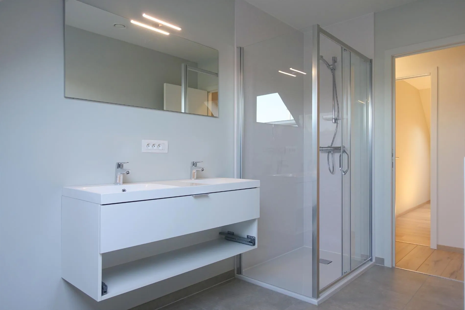 Bij het bouwen van deze kwalitatieve nieuwbouwwoningen staat leefcomfort voorop. Deze woning wordt samengesteld uit een ruime inkomhal met vestiaireruimte en een apart toilet, een lichtrijke leefruimte met open geïnstalleerde keuken en aangrenzend de technische berging. De 1ste verdieping is bereikbaar via de houten trap vertrekkend uit de inkomhal en biedt plaats aan de centrale nachthal met apart 2e toilet, 3 volwaardige slaapkamers en de badkamer met ligbad en douche. Tot slot geniet elke woning van een gezellige tuin en een carport aan de zijgevel. Mis uw kans niet en bel ons snel om een bezoek in te plannen