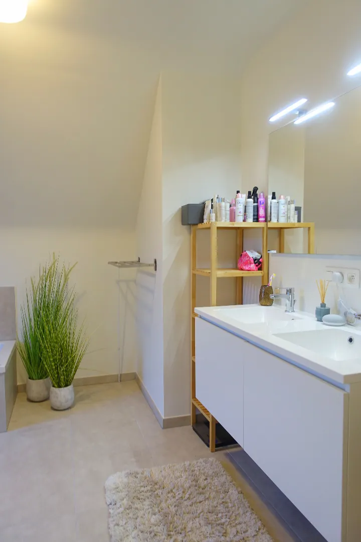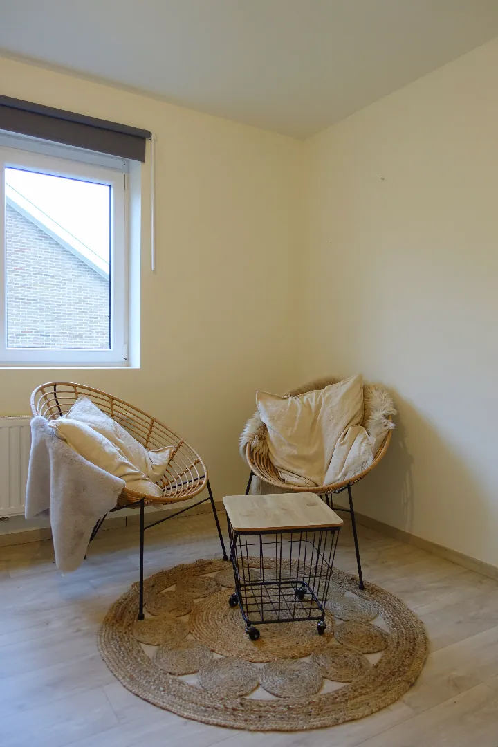 Gelegen in een rustige wijk te Jabbeke, op enkele minuten van alle winkels en voorzieningen treffen we deze prachtige half-open nieuwbouw woning aan. De woning werd in 2018 opgetrokken en wordt ingedeeld in een inkomhal met toilet, een woonkamer met open keuken, bergruimte en een garage. De 1ste verdieping van de woning is bereikbaar via de trap vertrekkend uit de inkomhal en biedt plaats aan 3 ruime slaapkamers, een 2de toilet en een prachtig afgewerkte badkamer met bad en douche. Kom deze topper snel ontdekken!