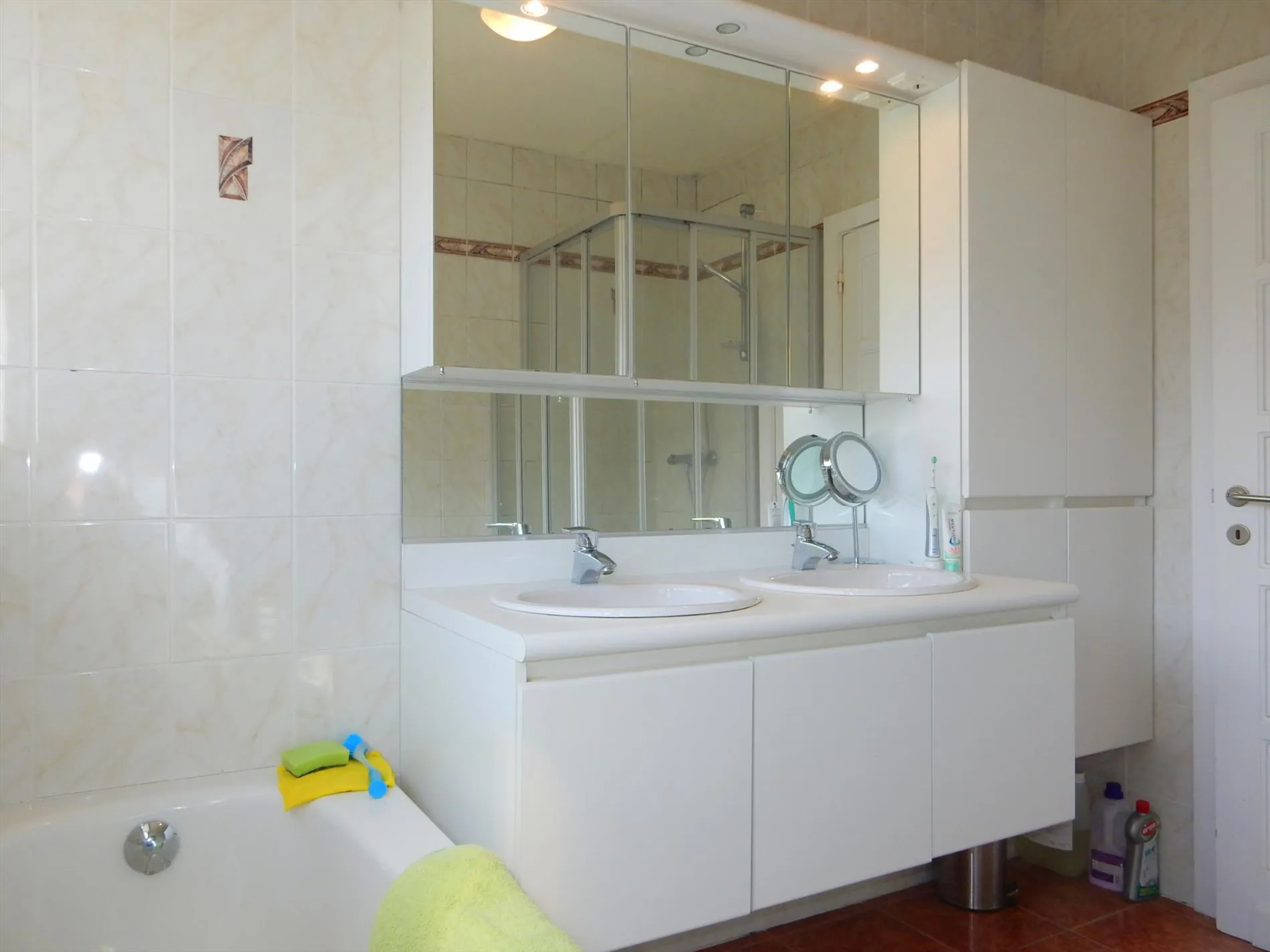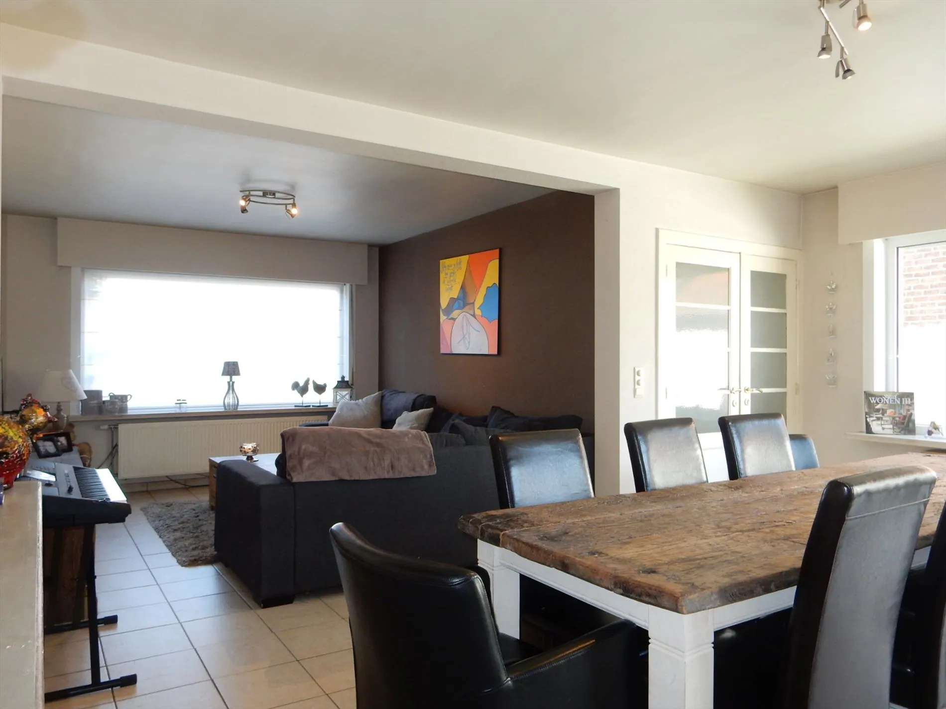 Deze half-open bebouwing is gelegen dichtbij het centrum van Jabbeke. De woning is een aantal jaar gelegen volledig gerenoveerd en is volledig instapklaar. Op het gelijkvloers is er een inkomhal, een ruime woonkamer met eetkamer, een geïnstalleerde keuken, een ruime wasplaats, een garage die dient als berging en een apart toilet. Boven bevinden zich 4 ruime slaapkamers, en een badkamer met douche, ligbad, toilet en dubbele lavabo. Tevens is er een kelderberging van 6,55m². Buiten is er een grote zonnige verzorgde tuin met zonnig terras. Bezoek deze woning snel!