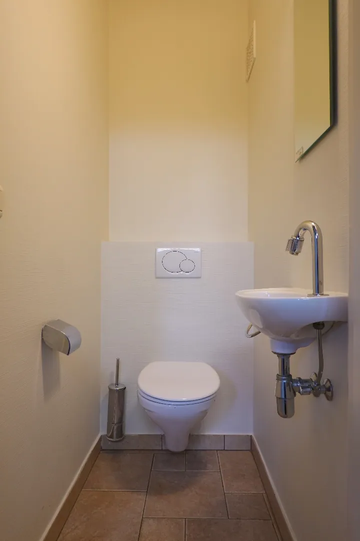 Gelegen langs de Aartrijksesteenweg te Jabbeke, op enkele minuten van alle winkels en voorzieningen treffen we deze prachtige villa aan. De woning wordt ingedeeld in een inkomhal met toilet, woonkamer met lichtrijke eetplaats, volledig ingerichte keuken, berging, wasplaats en 2 garages. De eerste verdieping wordt ingedeeld in een nachthal, 1 badkamer, 4 slaapkamers en bureau. Daarnaast is er nog een gezellige achtertuin/terras met overdekt terras. Kom deze absolute topper snel ontdekken!