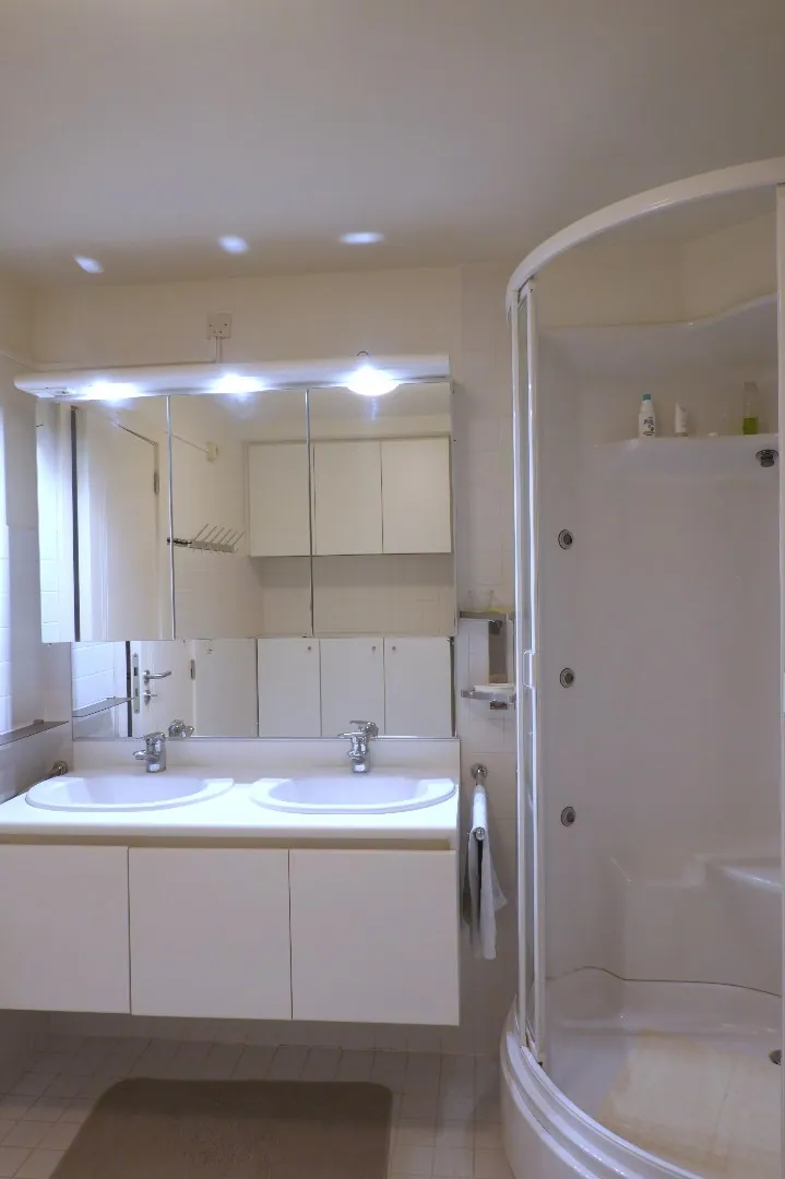 Pal in het centrum van Jabbeke, op wandelafstand van alle voorzieningen, treffen we de mooie residentie Jabetcha. Toegankelijk via de binnenplaats weg van alle drukte, treffen we dit mooie appartement op de 1e verdieping. Het appartement wordt samengesteld uit een ruime inkomhal met apart gastentoilet, de zeer lichtrijke open leefruimte en de volledig ingerichte keuken met aangrenzende berging. Het nachtgedeelte wordt samengesteld uit een ruime, centrale nachthal die toegang biedt tot de 3 ruime slaapkamers, de badkamer met dubbele lavabo + douche. Verder geniet u van een zeer ruim terras + veranda. Er is ook een ondergrondse garagebox aanwezig (+/-20m²) met geautomatiseerde poort en gemeenschappelijke fietsenbergingen. Huurprijs inclusief garagebox!