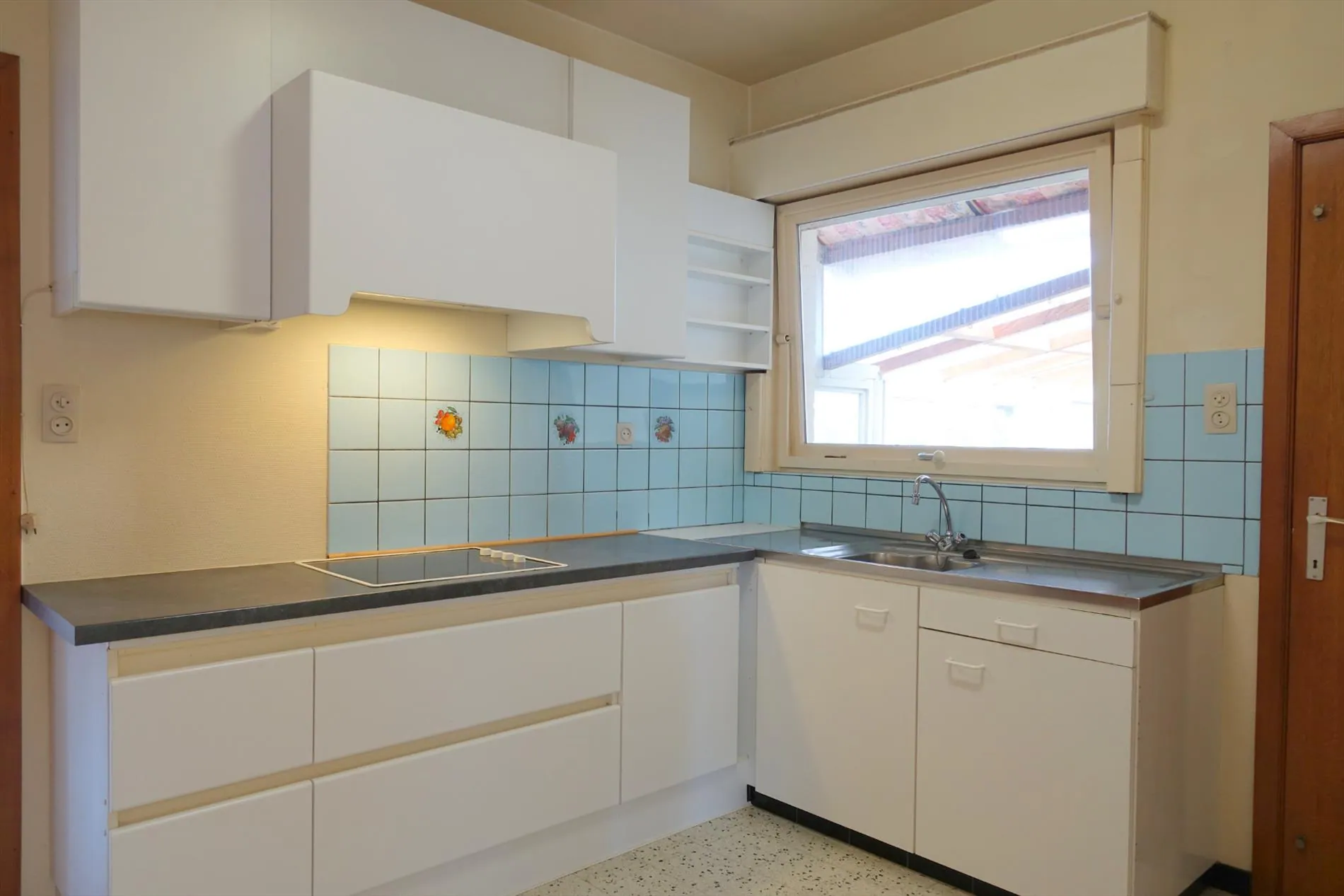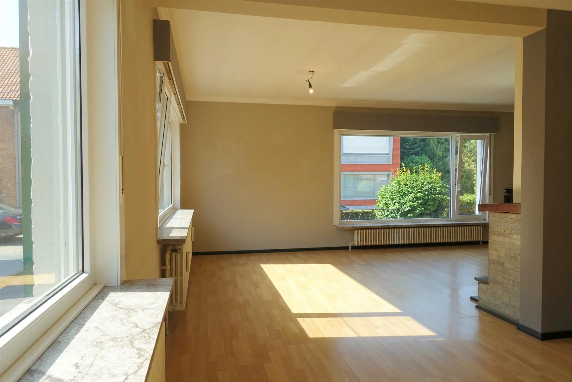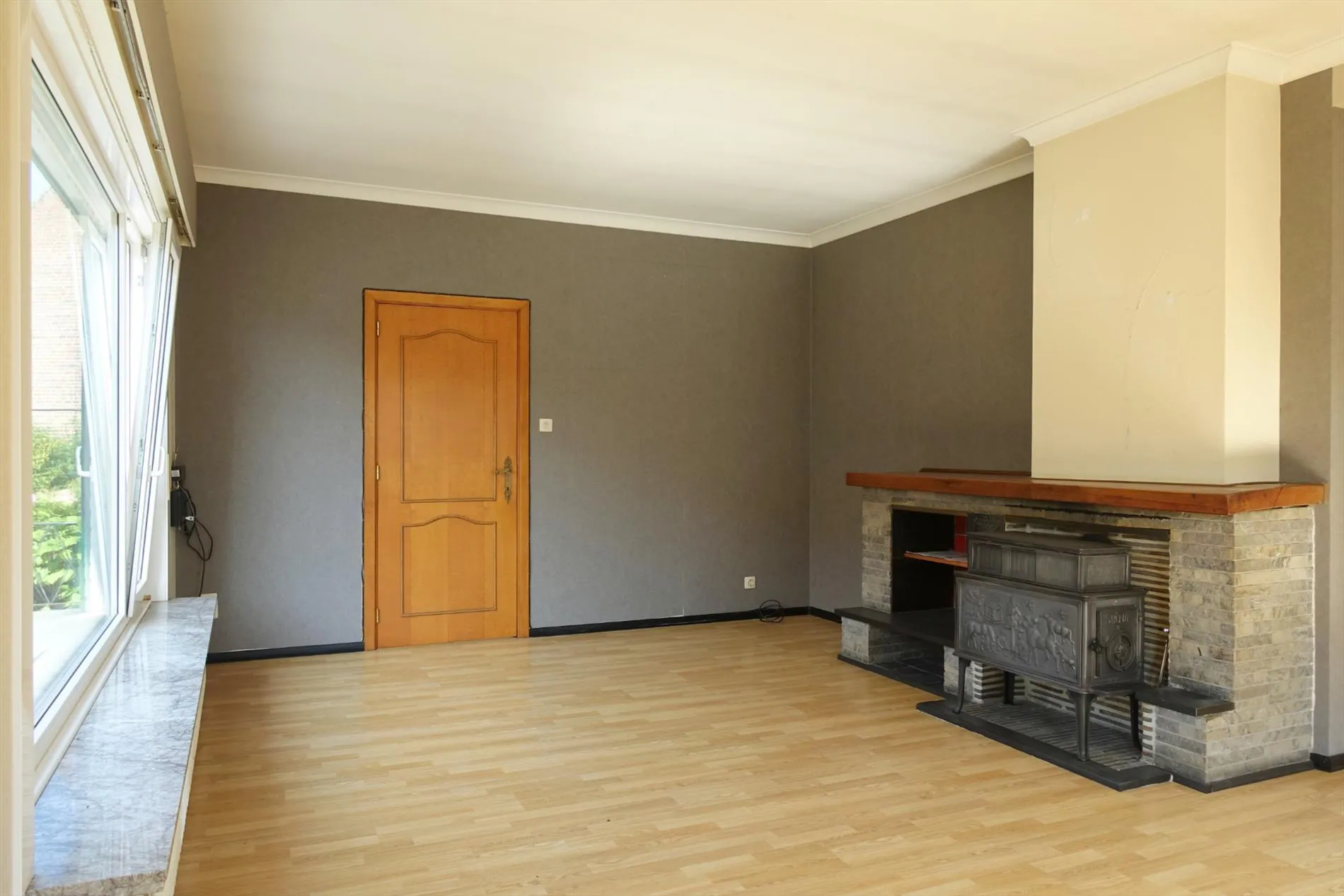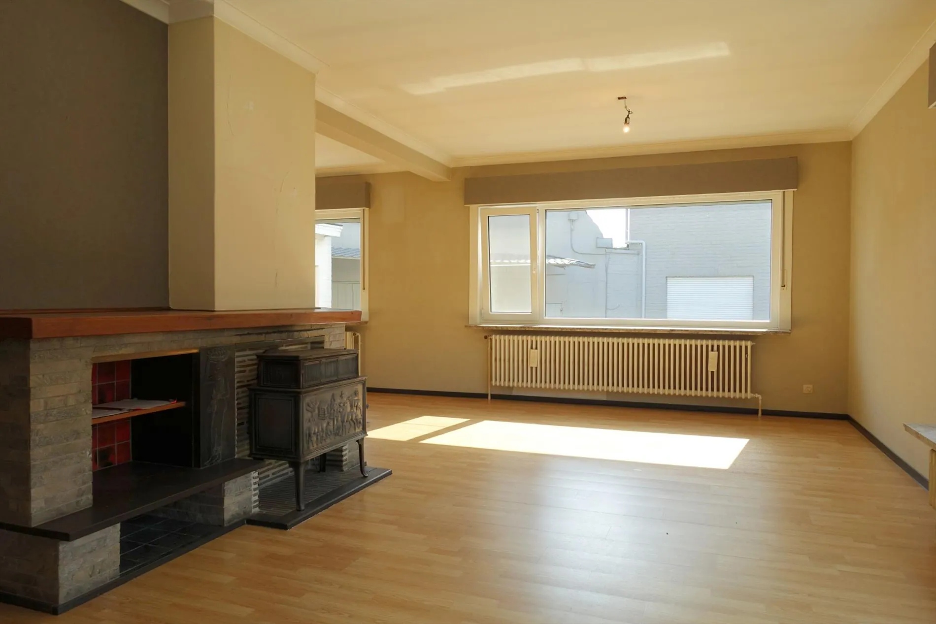 In de Vedastusstraat, op een boogscheut verwijderd van Jabbeke Dorp treffen we deze leuke gelijkvloerse woning aan. De woonst wordt ingedeeld in een ruime inkomhal, grote lichtrijke leefruimte met houtkachel, een aparte leefkeuken, een grote wasplaats/bergruimte, een koel keldertje, een ruime garage, 2 ruime slaapkamers, een badkamer met ligbad en toilet, een aangebouwde veranda die uitgeeft op de grote groene achtertuin en een extra berging met een 2de toilet. De woning werd recent volledig uitgerust met dubbele beglazing en er wordt nog een nieuwe, automatische garagepoort geplaatst. Neem contact op met ons kantoor voor een bezoek aan deze leuke woonst!