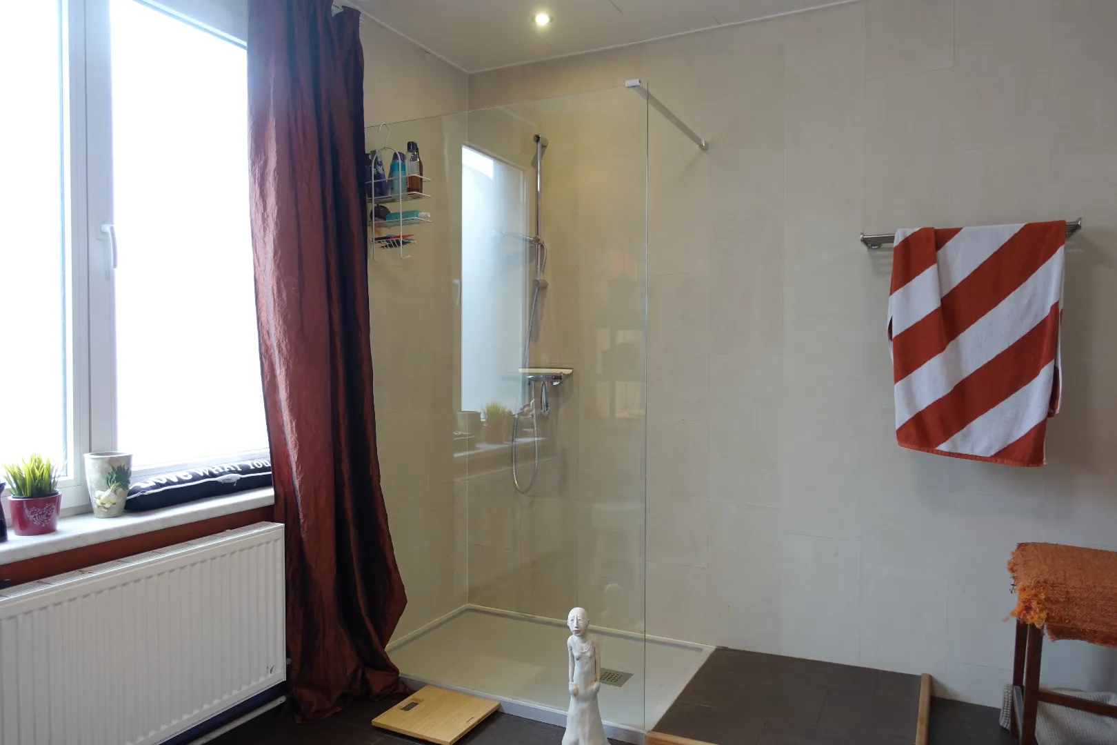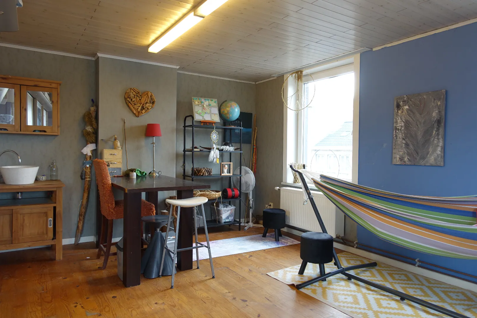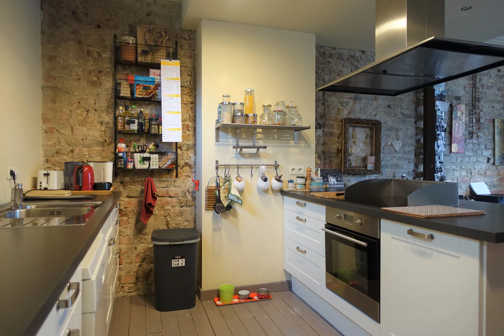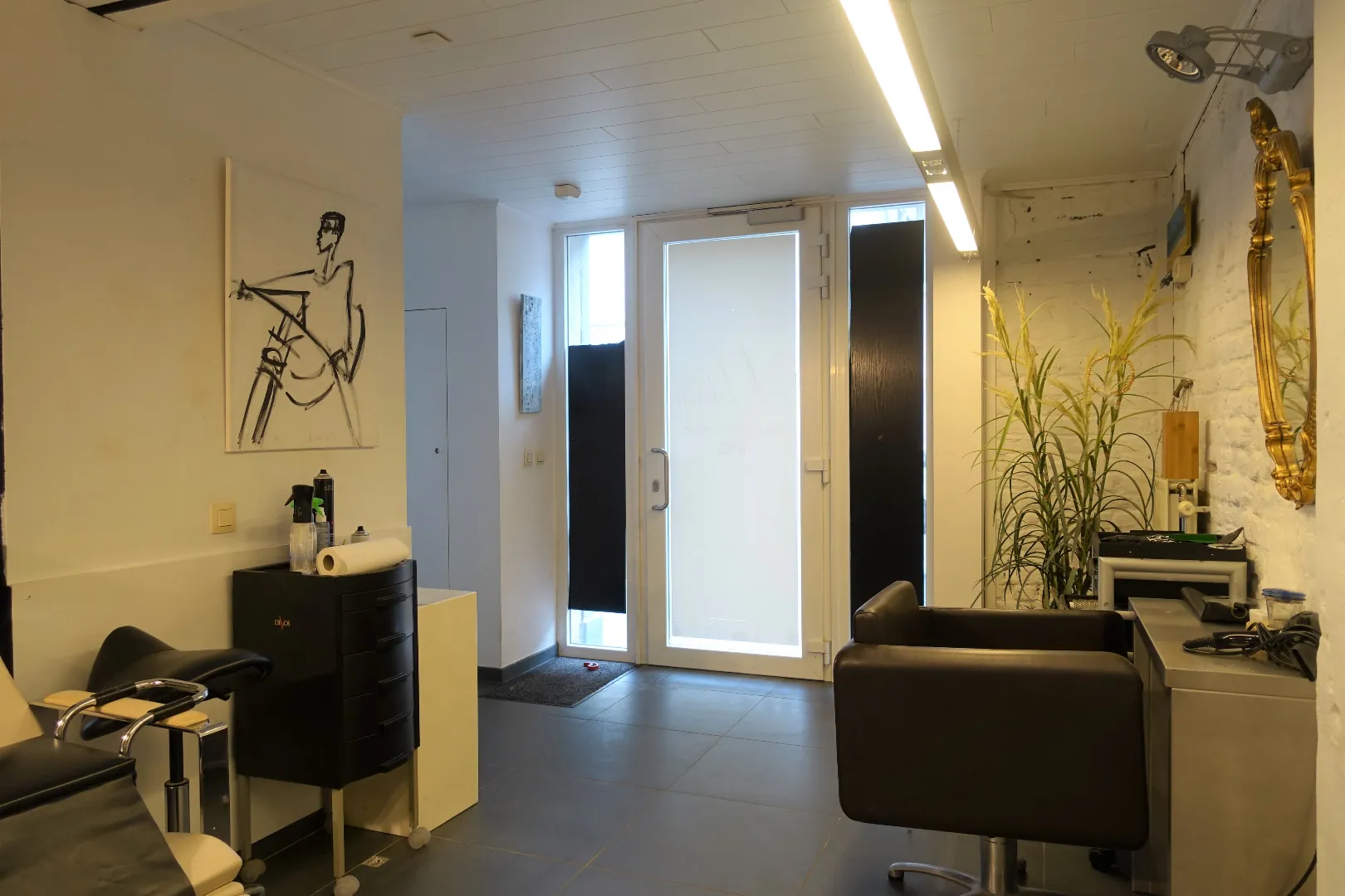 Het gelijkvloers werd voorheen uitgebaat als succesvol schoonheidssalon en bestaat uit 2 grote polyvalente ruimtes, een 3e afgeschermde ruimte die perfect dienst kan doen als behandelkamer/kantoor, een berging en het sanitair. Eens we de trap nemen komen we op de tussenverdieping die plaats biedt aan een ruime badkamer met inloopdouche, alsook een wasplaats/berging en apart toilet. De 1e verdieping wordt ingedeeld in een centrale hal met originele trap, een zeer lichtrijke leefruimte met authentieke elementen en de ruime open keuken. Tot slot biedt de 2e verdieping plaats aan 2 grote slaapkamers van respectievelijk 15m²/23m² en is er via de nachthal toegang tot een gezellig dakterras van 25m².