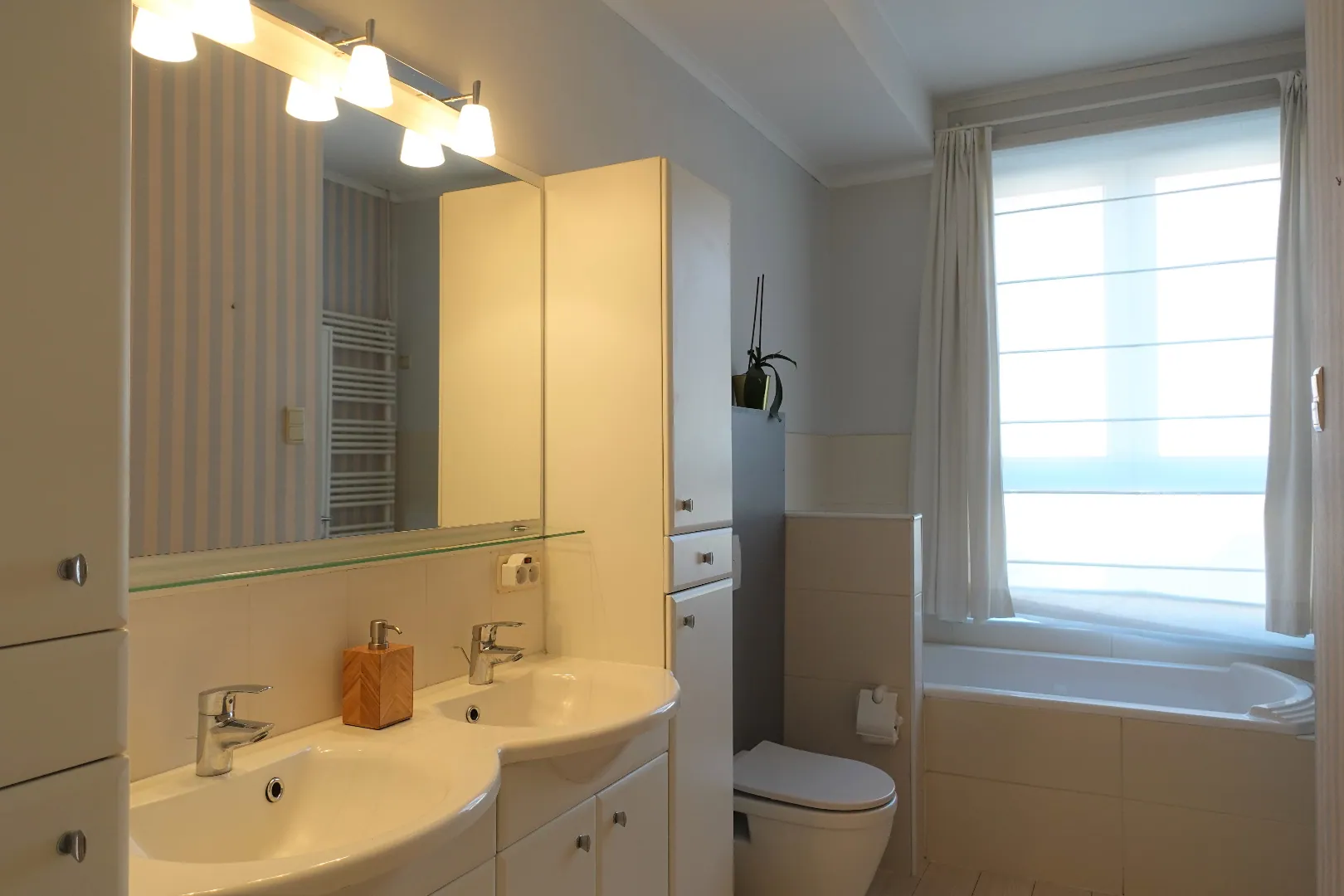 In de Edward De Jansstraat te Sint-Andries, op een boogscheut van centrum Brugge en alle voorzieningen, treffen we deze bijzondere woonst. De woning is instapklaar en beschikt op het gelijkvloers over een ruime garage. De 1ste verdieping wordt samengesteld uit de inkomhal, de uiterst gezellige en lichtrijke leefruimte, de open geïnstalleerde keuken en de ruime badkamer met dubbel lavabomeubel, toilet en ligbad. De 2e verdieping biedt opnieuw plaats aan een nachthal met bergruimte, 2 volwaardige slaapkamers waarvan 1 zéér grote kamer en tot slot de 2e badkamer met toilet en douche. Tot slot geniet de woonst van een zéér ruim, zuidgericht terras voorzien van zonneluifels. Bent u op zoek naar een unieke woonst in Brugge? Neem dan snel contact op met ons kantoor en kom langs op het bezoekmoment op zaterdag 09 januari!