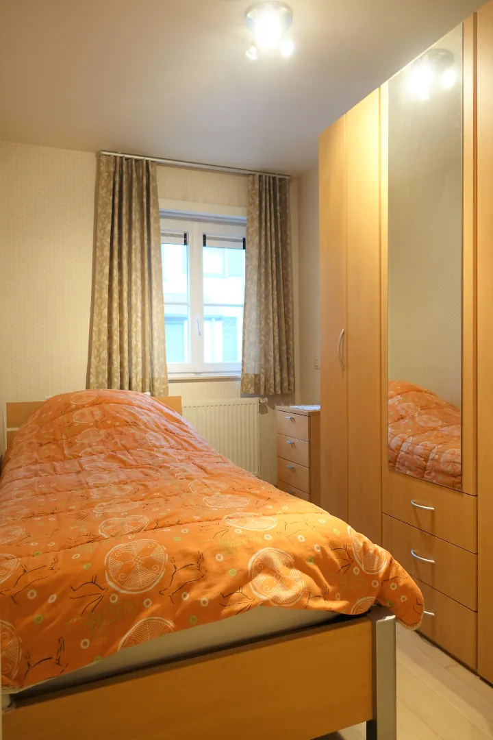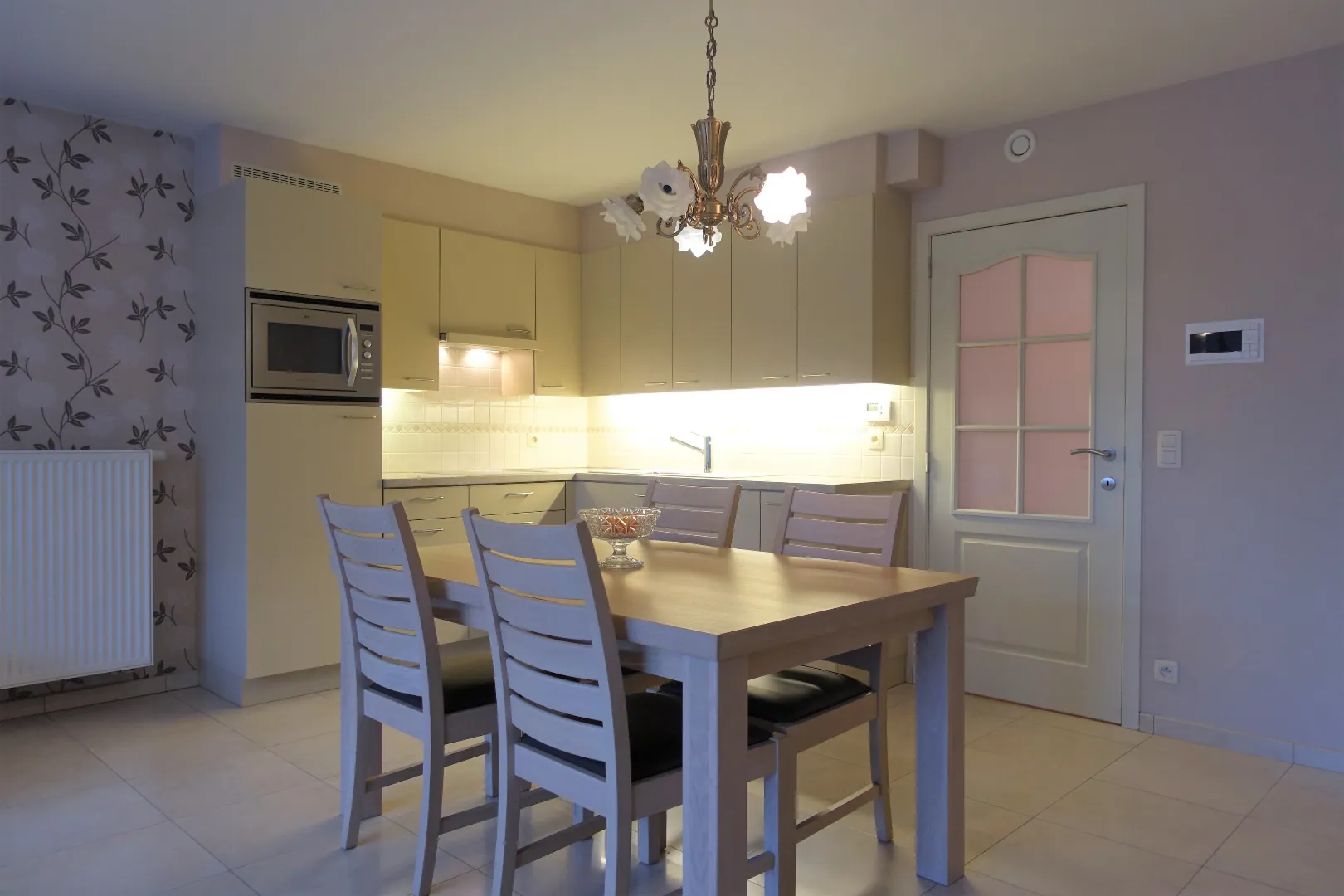 Gelegen in het dorp van Bekegem, op de benedenverdieping van Residentie De Kroon, treffen we dit instapklare appartement. Het appartement dateert van 2008, werd steeds perfect onderhouden en bevindt zich in een instapklare staat. De eigendom wordt ingedeeld in een centrale inkomhal, een apart toilet, de lichtrijke leefruimte, de open keuken, een praktische berging, 2 slaapkamers en de badkamer. Verder geniet het appartement van een groot terras (33m²) en een garagebox (16,5m²) met geautomatiseerde sectionaalpoort. Tot slot geniet de residentie van een gemeenschappelijke fietsenberging en een gemeenschappelijk vuilnislokaal. Bent u op zoek naar een instapklaar appartement voor eigen bewoning of de ideale investering? Neem vandaag contact op met één van onze kantoren en breng een bezoek!