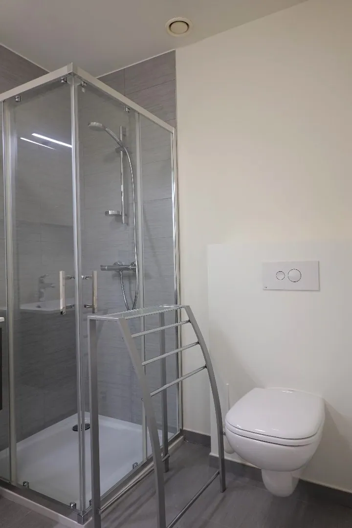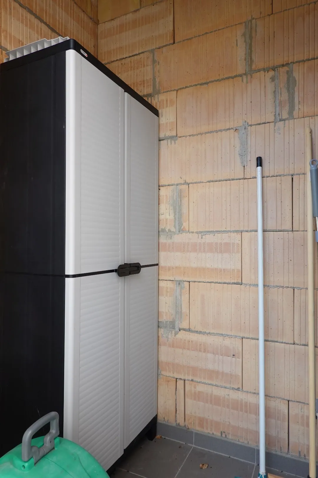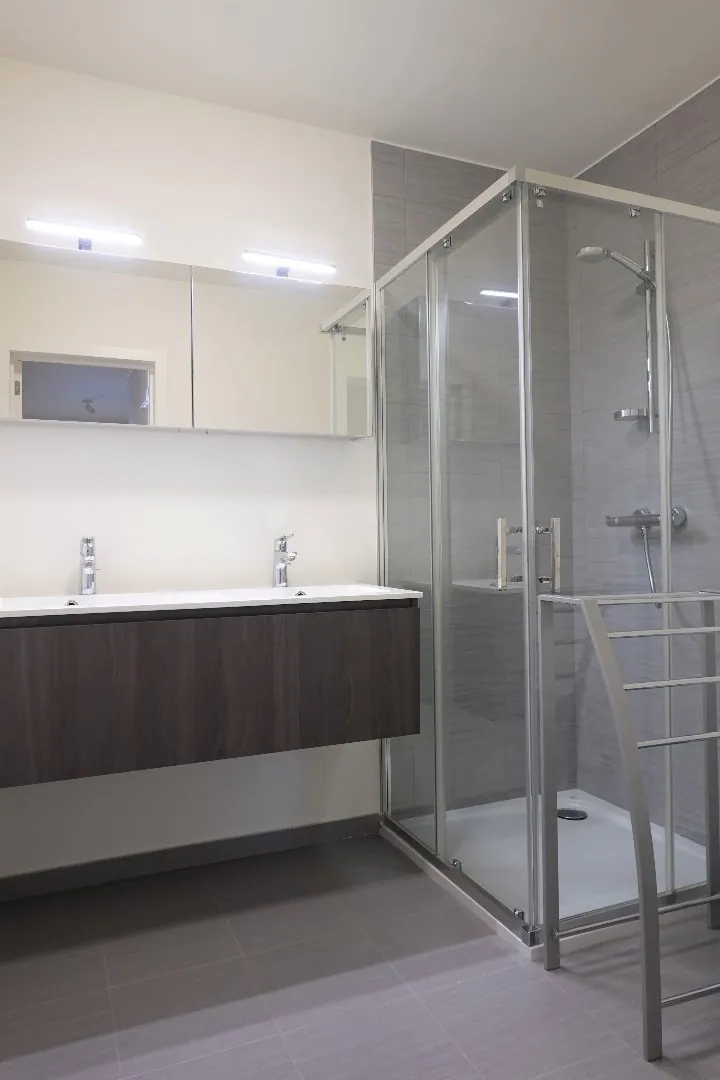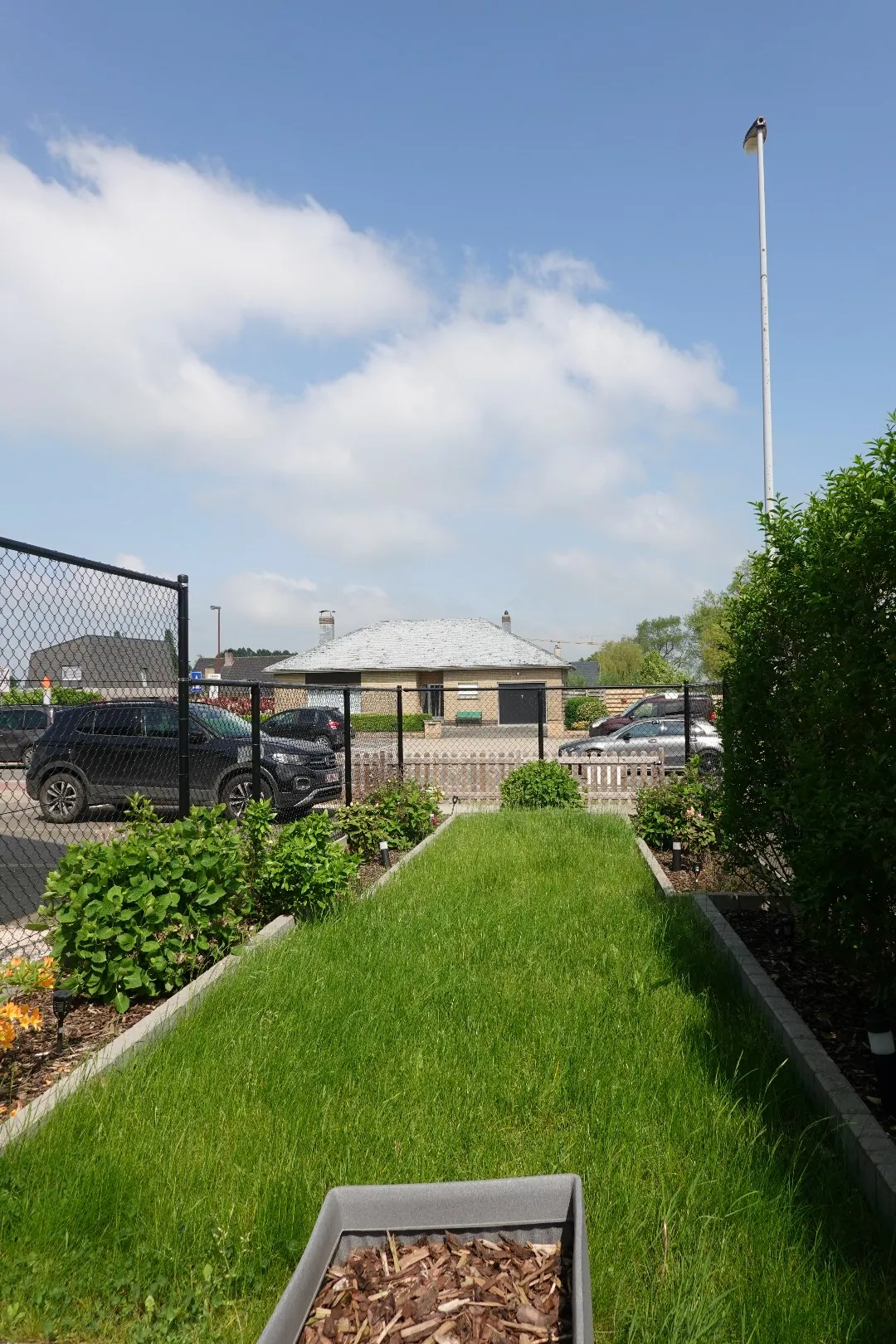 Centrale inkomhal, apart toilet met wastafel, de lichtrijke leefruimte met open, ingerichte keuken en toegang tot de tuin met zonnig terras en tuinberging, een praktische berging, 2 volwaardige slaapkamers en de badkamer met dubbel lavabomeubel-douche-2e toilet. Verder geniet het appartement van een privatieve parkeerplaats en privatieve berging, beiden inbegrepen in de aankoopprijs!