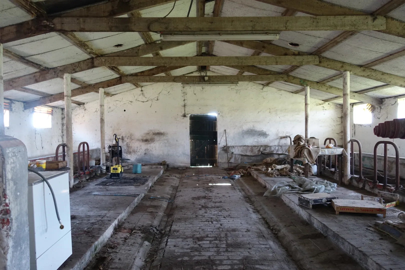 De hoevewoning werd kloek gebouwd in 1934, werd reeds een eerste keer verbouwd in 1986 waarbij huidige indeling ontstond: Een eerste inkomhal met toegang tot de 1ste slaapkamer, de badkamer en de leefkeuken, aangrenzend een grote charmante leefruimte met houtkachel, een 2e inkomhal met toegang tot de 2e slaapkamer, de woonkamer en tot slot de 2e leefruimte waar de achterkeuken op aansluit. De 1ste verdieping betreft een ruime leefzolder (94m²) die bereikbaar is via de vaste trap vertrekkend vanuit de 2e leefruimte. Verder geniet de hoeve van een prachtig weiland, alsook van een 3-tal stallen, een grote hangar en een garageconstructie die allen te renoveren zijn.