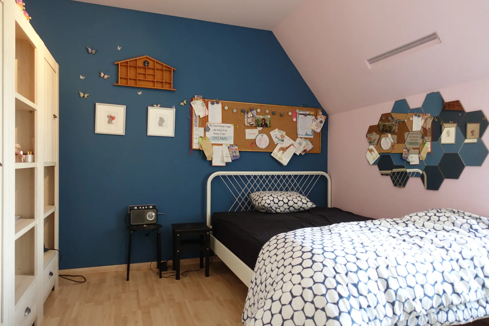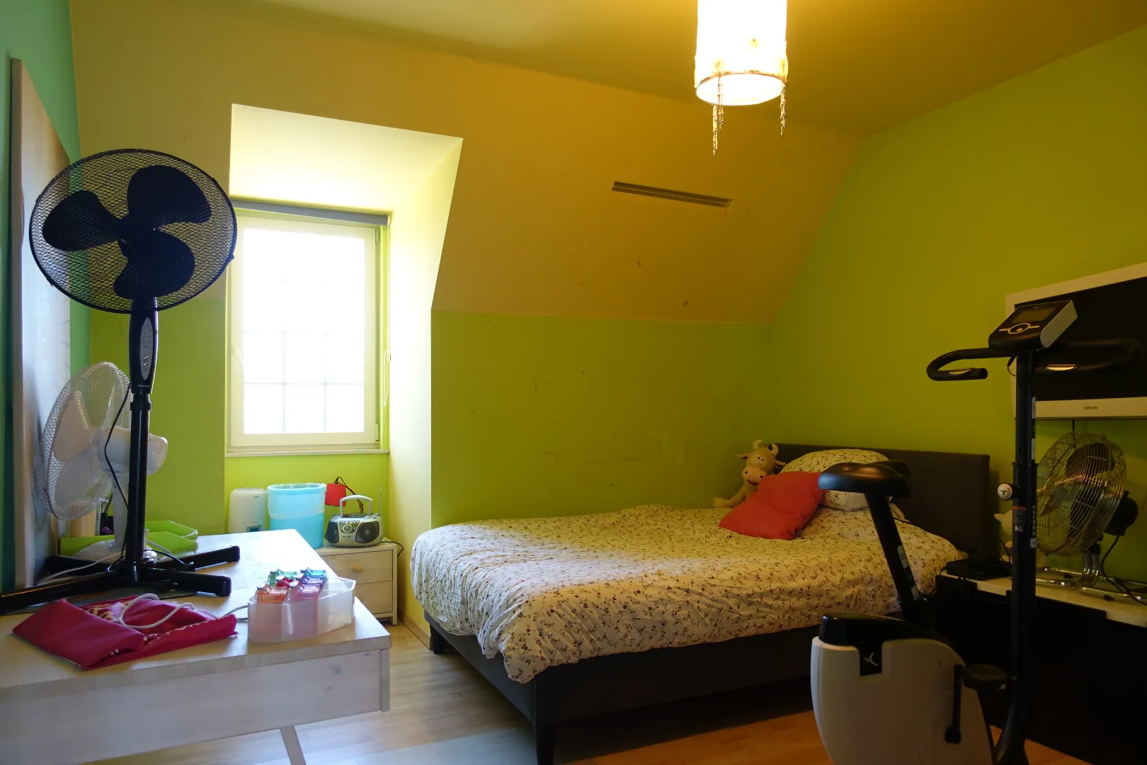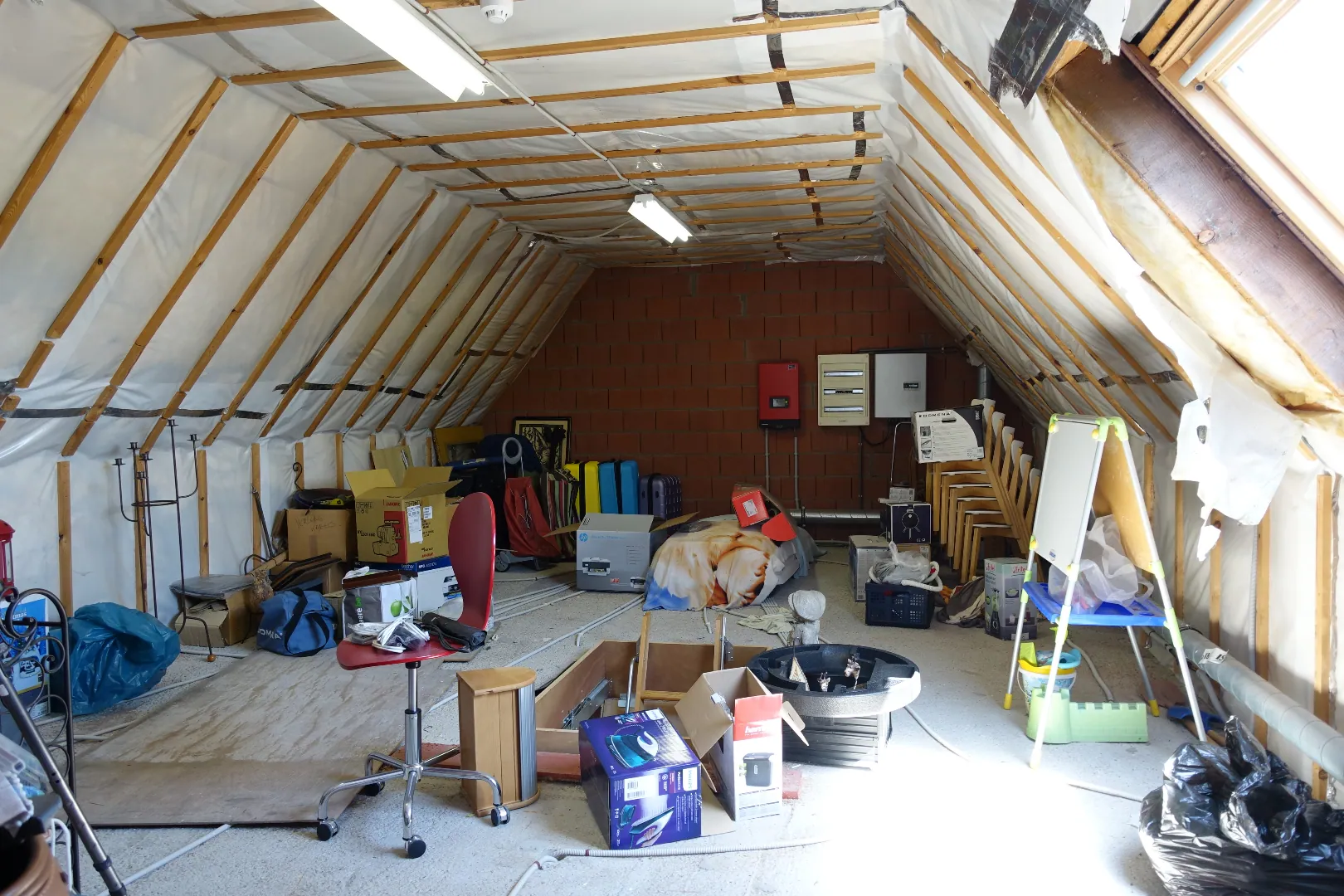 Op het eerste verdiep treffen we de open nachthal, de master bedroom met dressing, de kwalitatief afgewerkte badkamer met ligbad en inloopdouche, 2 ruime slaapkamers, apart toilet en afzonderlijke bergruimte. De grote bergzolder (48m²) is bereikbaar via het zolderluik.