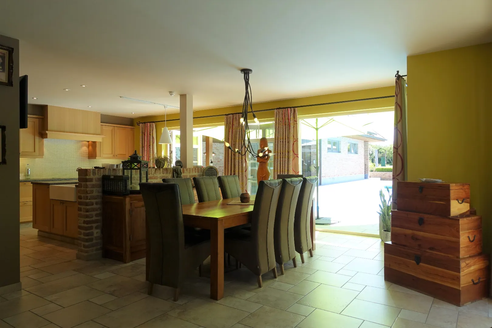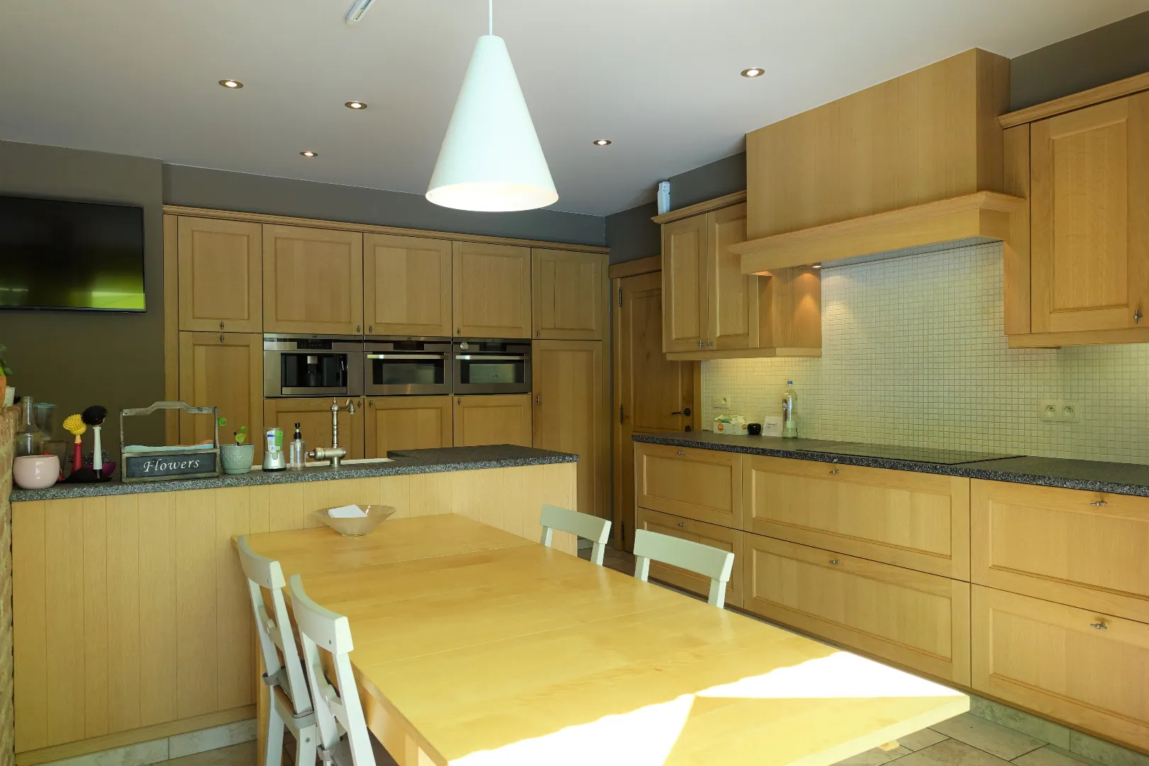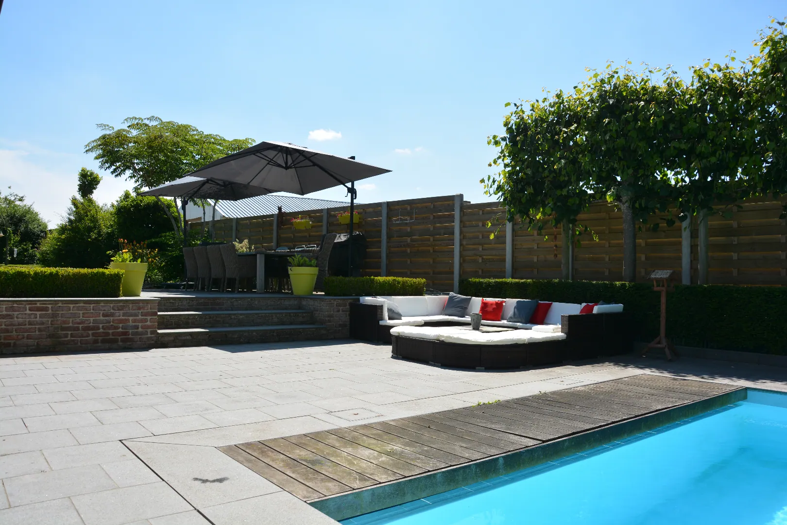 In het landelijke Ettelgem vinden we deze recente, luxueuze landelijke villa terug. Op een zuid georiënteerd perceel van 1.337m² kunt u de hele dag genieten in de prachtig aangelegde tuin met zwembad en wellness.