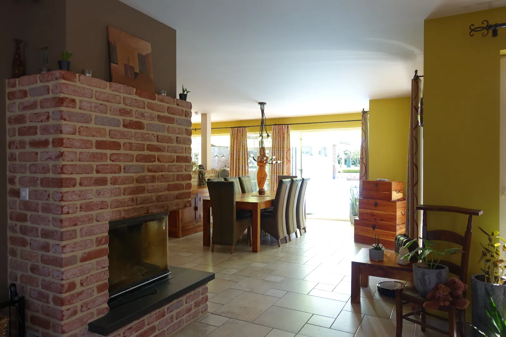 Bij het betreden van de woning komt u via de ruime inkomhal met gastentoilet en vestiairehoek uit in de karaktervolle woonruimte die wordt samengesteld uit de gezellige zithoek met houtkachel, de grote eetplaats en open leefkeuken die beiden zicht hebben op de prachtige achtertuin. Verder is er op het gelijkvloers nog een praktische berging/wasplaats en een grote inpandige garage (29m²) met automatische sectionaalpoort.