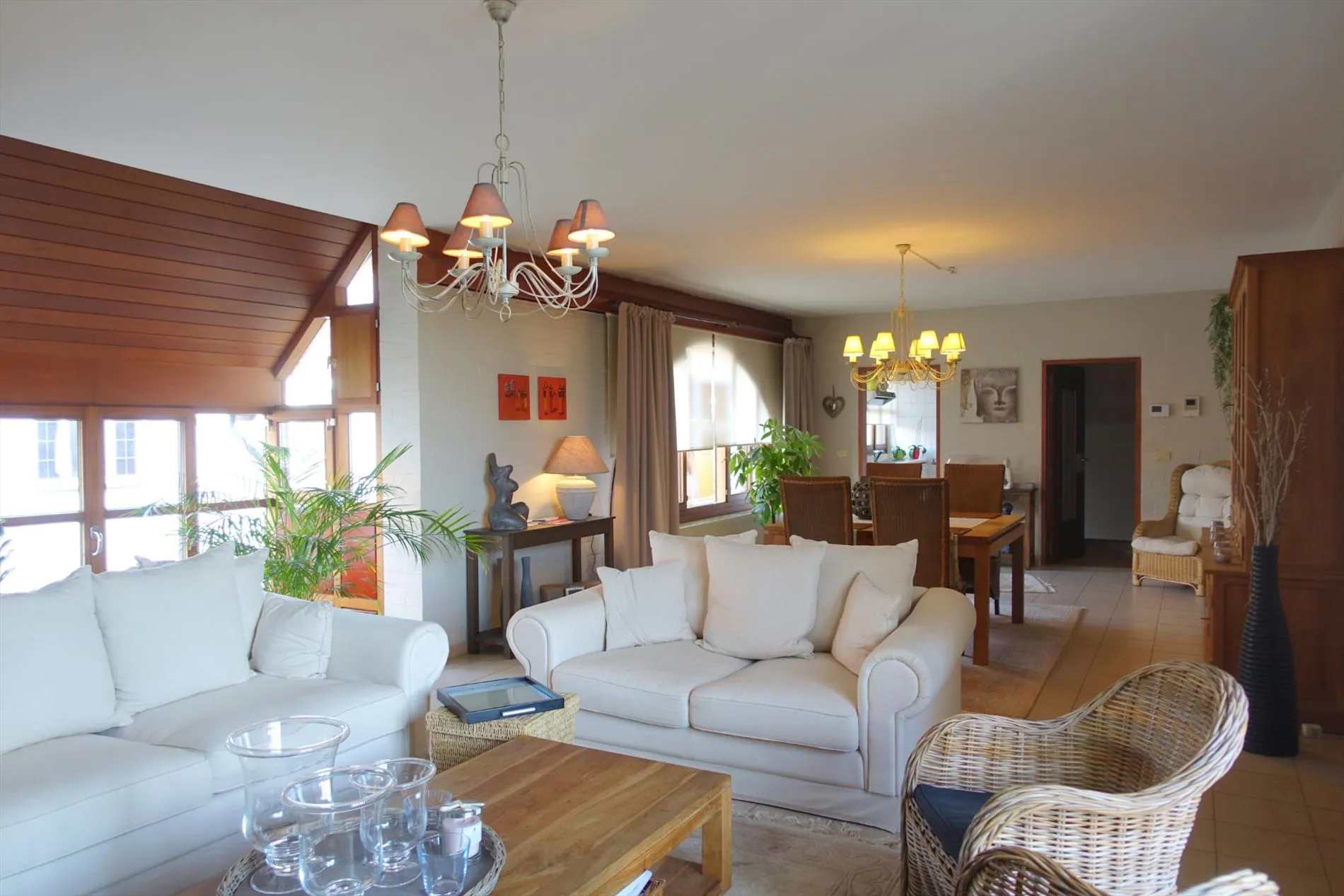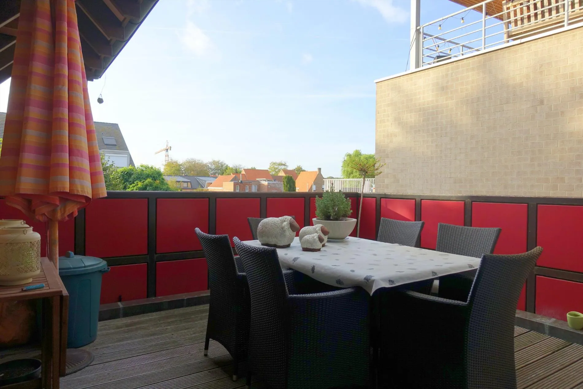Het duplex-appartement wordt samengesteld uit een gelijkvloerse inkomhal waaruit de vaste trap vertrekt naar verdieping 1. Eens daar aangekomen treffen we een open inkomhal, een unieke leefruimte, de leuke ingerichte keuken, een praktische berging, de badkamer, het apart toilet, 2 slaapkamers en het zonneterras. De 2de verdieping is bereikbaar via de vaste trap en biedt nogmaals plaats aan een bergruimte, een apart toilet, nogmaals 2 slaapkamers en 2 zolderbergingen.