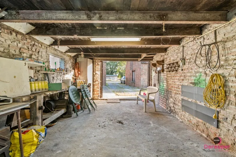 Momenteel bevindt zich op het perceel een bestaande woning met garage, kelder en bijgebouwen, die eventueel gesloopt kan worden ten voordele van nieuwbouw. Deze optie maakt het perceel extra aantrekkelijk voor bouwers die hun droomwoning willen realiseren in een rustige, groene omgeving.