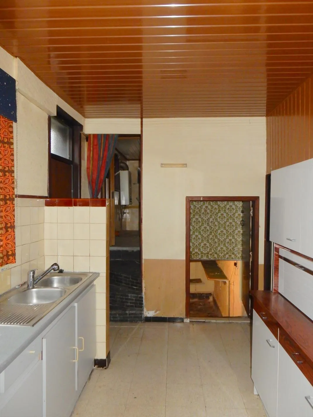 Gelegen langs de Aartrijksesteenweg te Jabbeke, op een steenworp van het centrum en alle voorzieningen huisvest deze te renoveren woning. De woonst is gelegen op een perceel van 922 m² en bestaat op het gelijkvloers uit een woonkamer met veranda, een slaapkamer, een keuken met kelder en een badkamer. De zolder is toegankelijk via een vaste trap en dient nog ingericht te worden. Er is een grote tuin met tuinbergingen en voldoende parkeergelegenheid. Kom deze woning snel ontdekken!