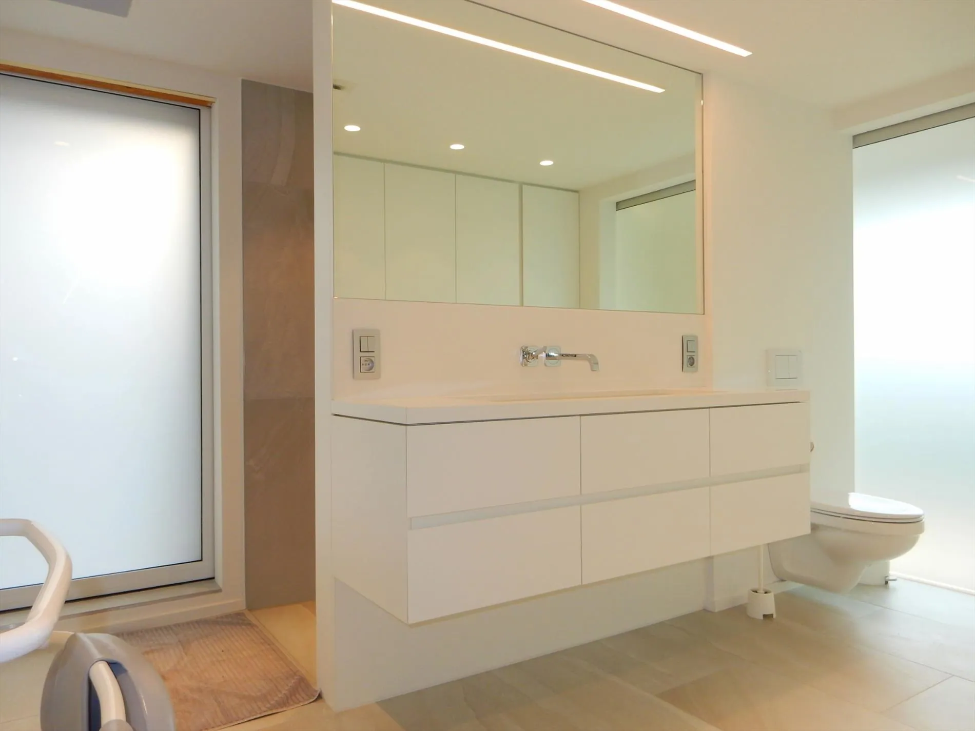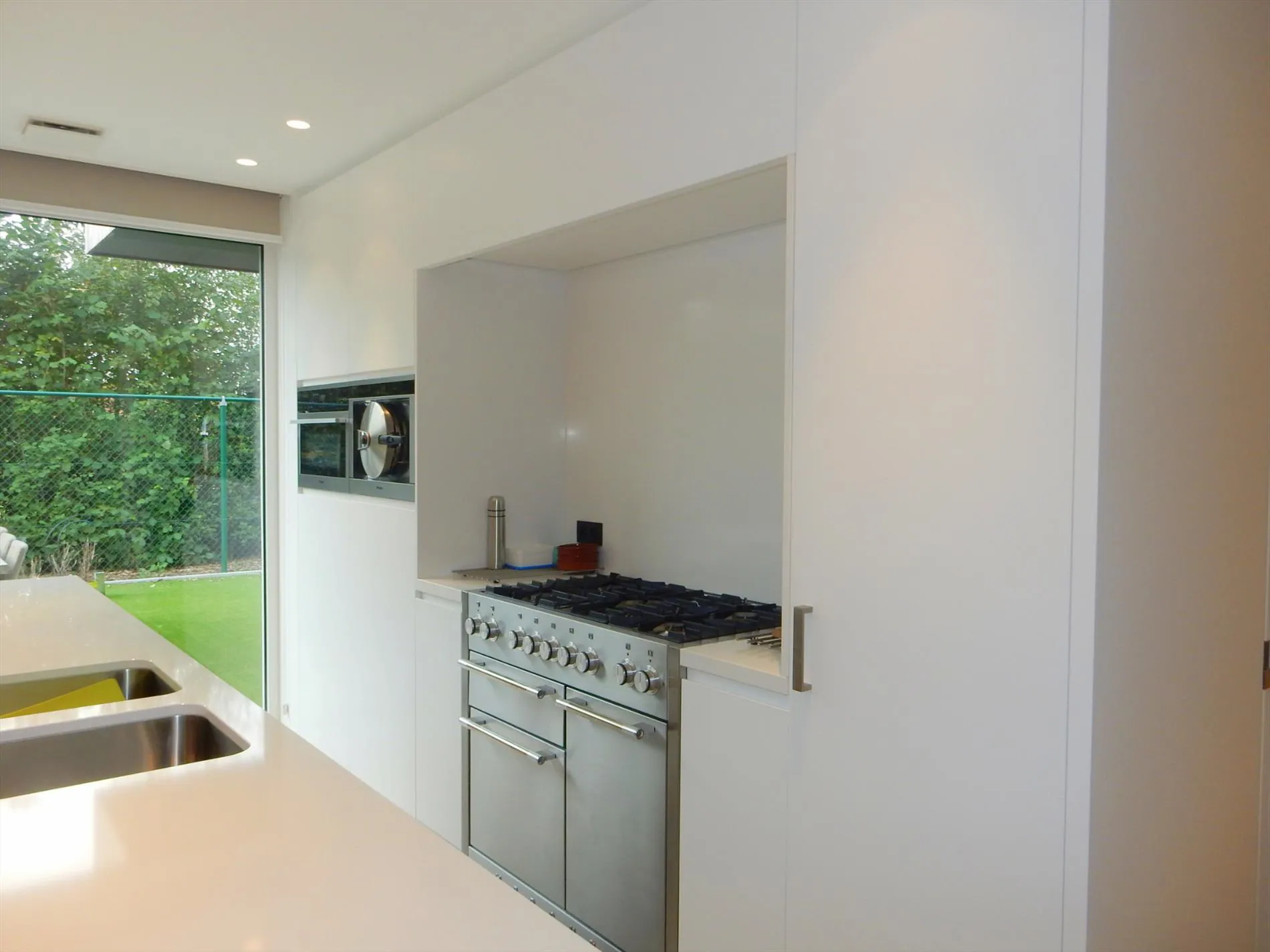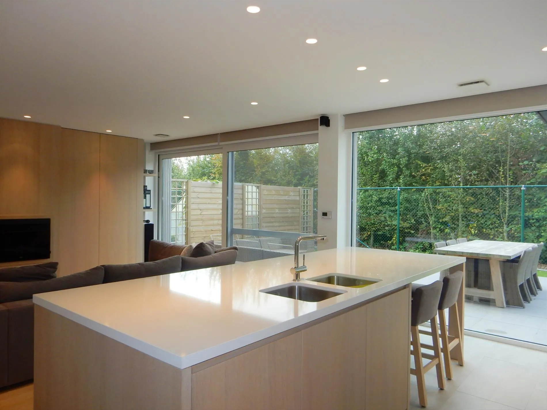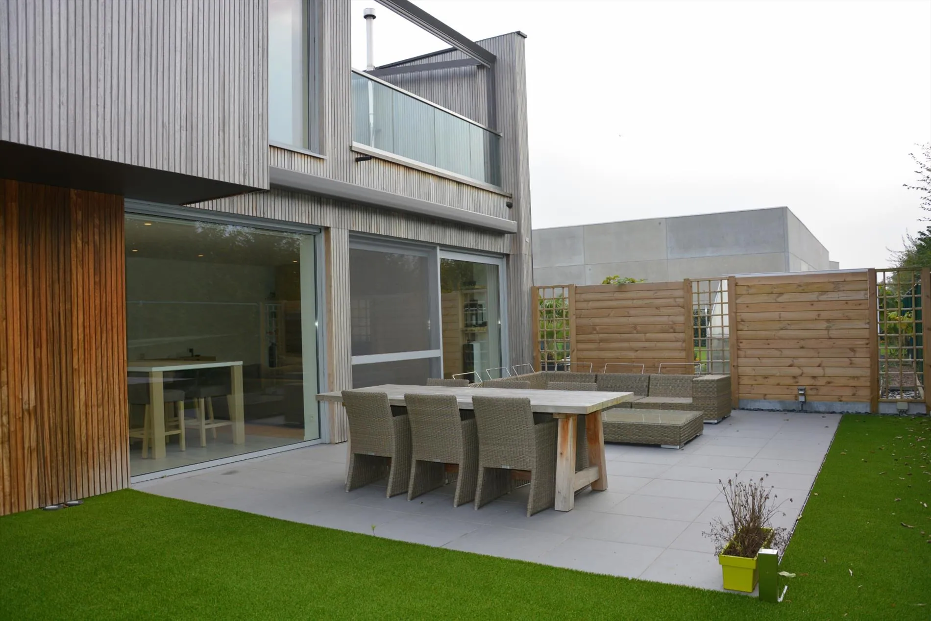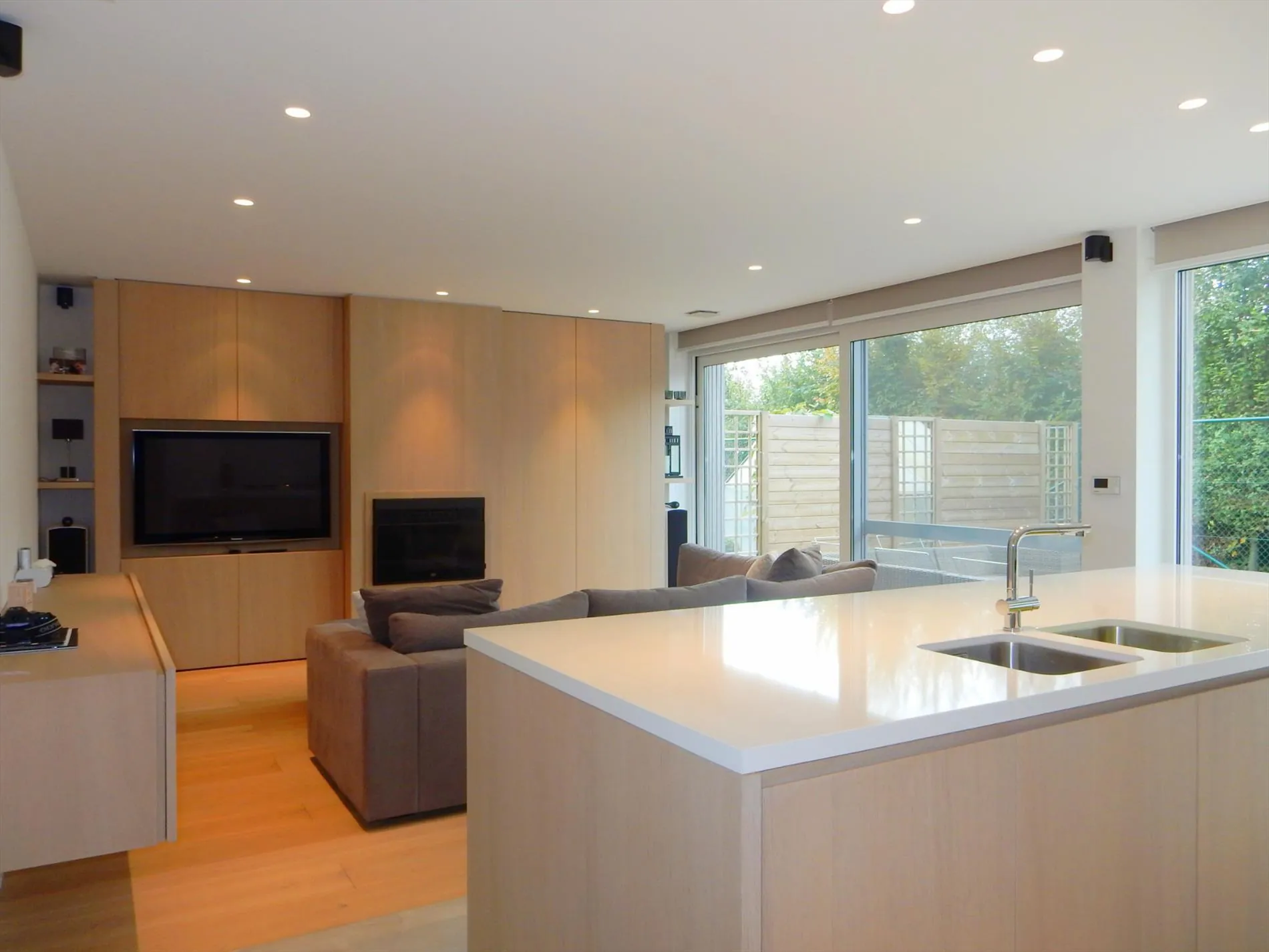 Dit bedrijfsgebouw is volledig nieuw en is opgesplitst in een lichtrijke toonzaal van 160m² met loods/atelier/hangar van 410m². De toonzaal is uitgerust met een keuken, archiefruimte, toilet, bureel, vloerverwarming en ventilatie. De hangar is uitgerust met een grote houtkachel, afzonderlijk toilet, 2 bergruimtes waaronder 1 voorzien met aansluiting voor wasmachine en droogkast en een autobrug. De loods staat volledig op regenwater! Boven de toonzaal is er een studio aanwezig die voorzien is van een woonkamer met pelletkachel, een kitchenette, een slaapkamer, een badkamer met inloopdouche en toilet en een grote bergruimte. De woning die enkele maanden geleden werd opgeleverd ligt achteraan het bedrijfsgebouw en is ingericht met veel smaak en charme. Er werden zeer veel kwalitatieve materialen gebruikt zoals eiken parket, de ingemaakte kasten zijn uitgerust met een fineerlaag van eik, schuifdeuren, zonneweringen, alarm, keramische vloeren, enz. De woning omvat een inkomhal, ingerichte compacte berging, gezellige woonkamer met ingemaakte kasten en een pelletkachel, volledig ingericht keukeneiland met een prachtig retrofornuis van Mercury, vaatwas, steamer, microgolf, dampkap en een composieten werkblad. Via de eiken designtrap gaat u naar boven waar u toekomt in de slaapkamer met grote dressing, infraroodcabine, moderne badkamer uitgerust met dubbele lavabo, inloopdouche met rainshower en ingemaakte kasten. Via de badkamer of de nachthal kan u naar het dakterras die afgewerkt is met bankirai, een jacuzzi, grote zonnewering en surround system. De woning is volledig uitgerust met zonneweringen, surround system, alarm, gordijnen enz. Er is ook nog een garage aanwezig. Achteraan werd de tuin aangelegd met kunstgras, een zonnig terras en is er mooie verlichting voorzien. Rondom de loods is er ook camerabewaking voorzien en de oprit kan volledig afgesloten worden met een elektrische hekken en/of slagboom.