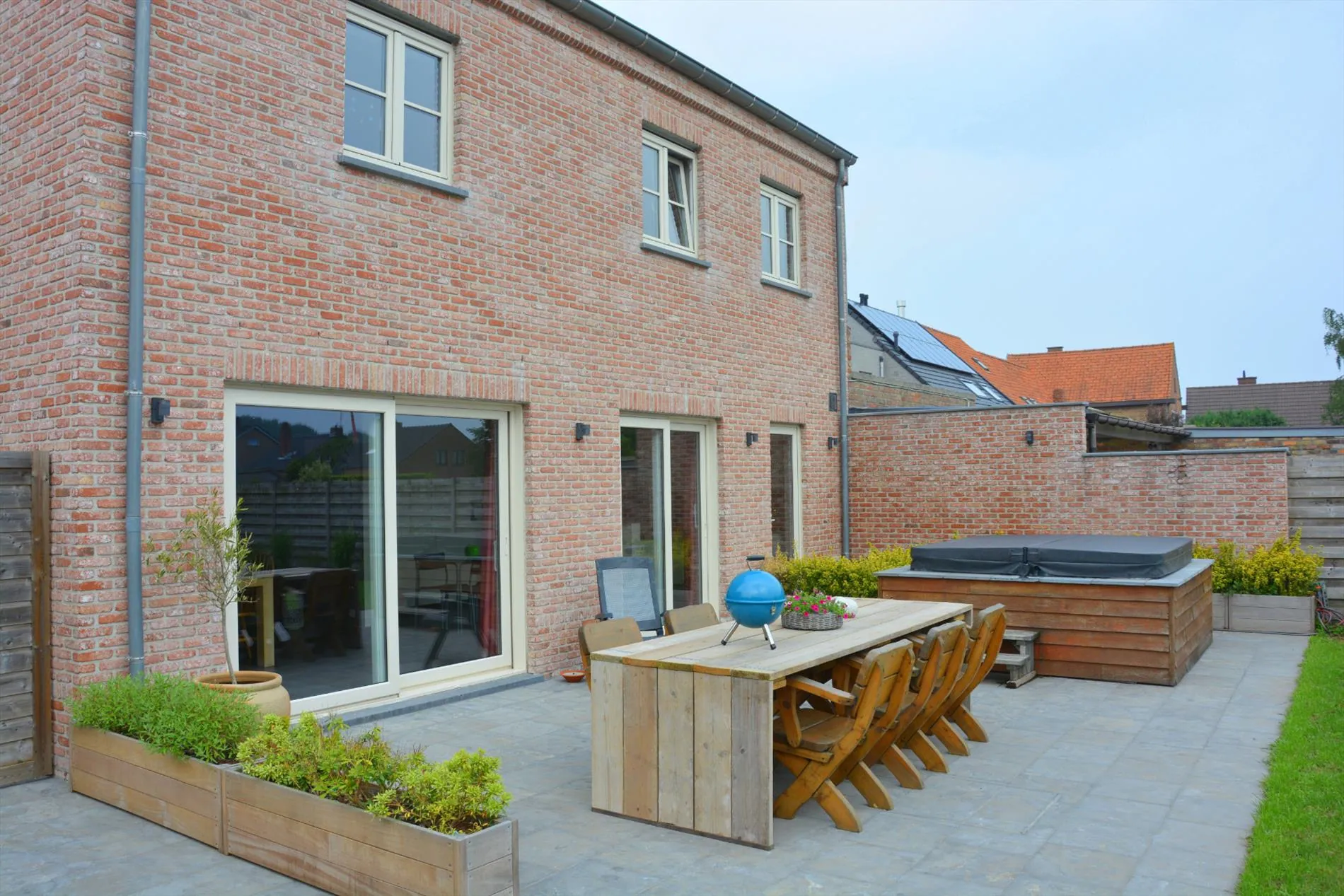 Gelegen in de rustige Zerkegemstraat, net buiten het centrum van Jabbeke treffen we deze recente en uiterst gezellige woning. Op het gelijkvloers wordt het pand samengesteld uit een ruime inkomhal met vestiairemogelijkheid en apart toilet, een ruime lichtrijke leefruimte met zicht op de gezellige tuin, volledig ingerichte open leefkeuken, de garage met ingemaakte kastenwanden en uitgerust met automatische sectionaalpoort. De 1ste verdieping is bereikbaar via de trap vertrekkend vanuit de inkomhal en biedt plaats aan een luchtige nachthal, een prachtige badkamer met 2de toilet, een ligbad en douche, 3 slaapkamers, een extra opbergruimte en toegang via de valtrap tot de zéér ruime zolder. Tot slot geniet de woning van een prachtige zuidgerichte tuin met jacuzzi. Kom snel deze unieke en interessante woning bezoeken! (Overname jacuzzi en zonnepanelen bespreekbaar)
