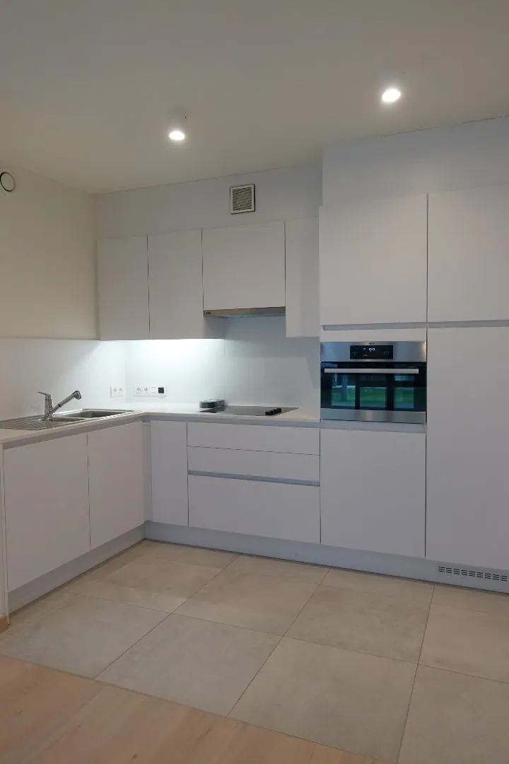 Het appartement werd afgewerkt met hoogwaardige en duurzame materialen, waaronder parketvloeren, een keuken met composiet werkblad, vloerverwarming en hoogrendementsglas. Bovendien zijn gordijnen, zonwering en verlichting reeds voorzien. Een private autostaanplaats en kelderberging is inbegrepen.