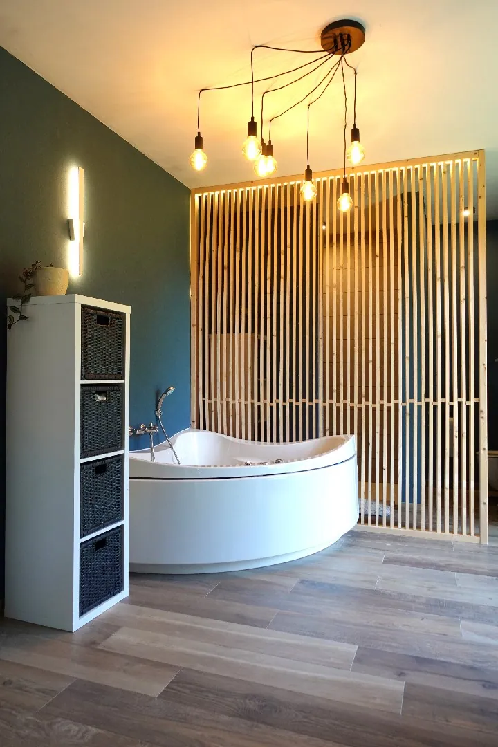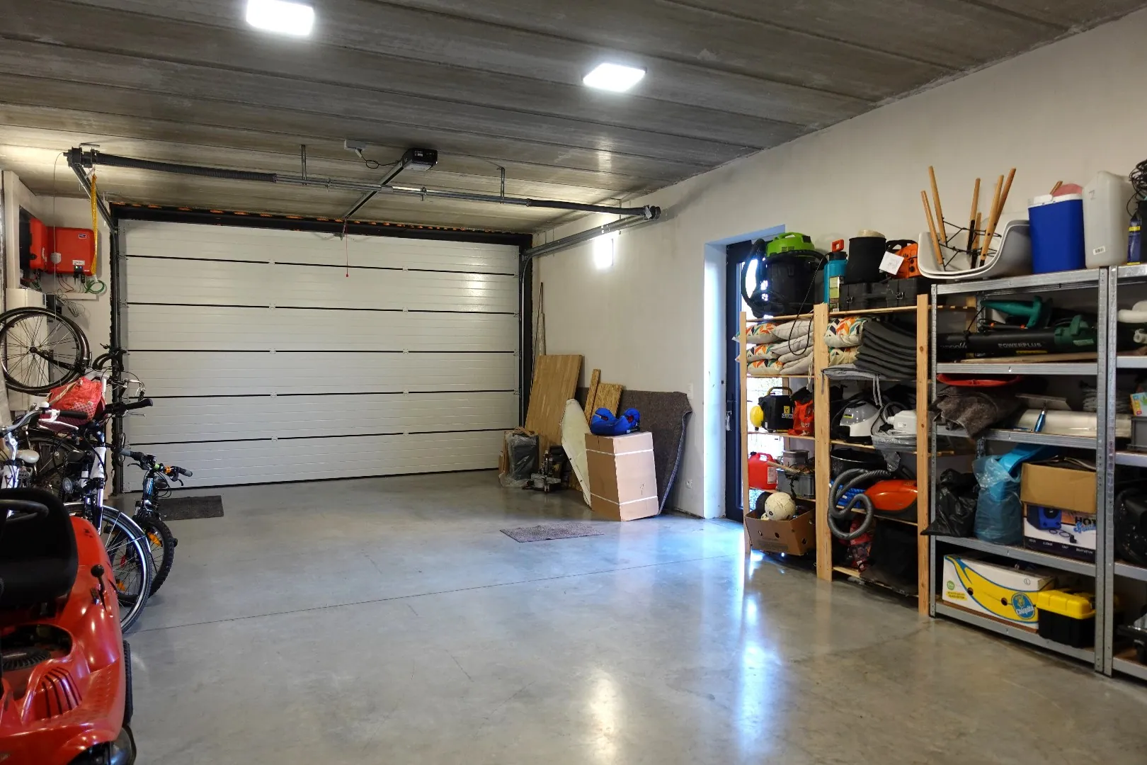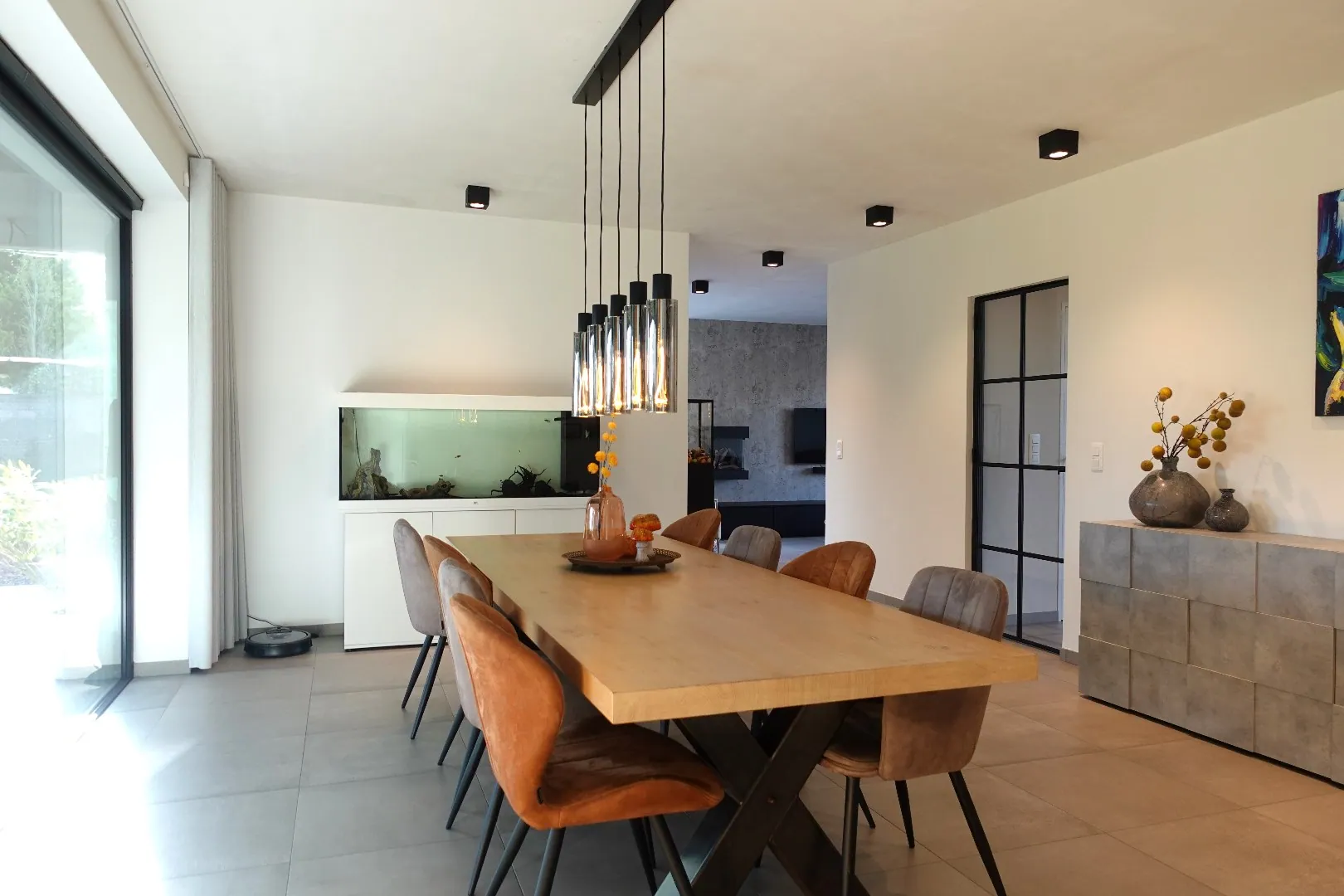 Via de ruime inkomhal, voorzien van gastentoilet met design wastafel en een bureelruimte met ingemaakte kastenwand, betreedt u de lichtrijke en hedendaagse leef- en eetruimte. Aansluitend treft u de open, volledig uitgeruste keuken met ontbijthoek en de knusse zithoek met vast tv-meubel en sierhaard die zicht geeft op de Noord-oost georiënteerde tuin en het aangelegde terras. Verder biedt het gelijkvloers een praktische wasplaats met ruimte voor alle technieken, een ontspanningsruimte met hoekbad, inloopdouche & toilet en een inpandige garage met geautomatiseerde sectionaalpoort.