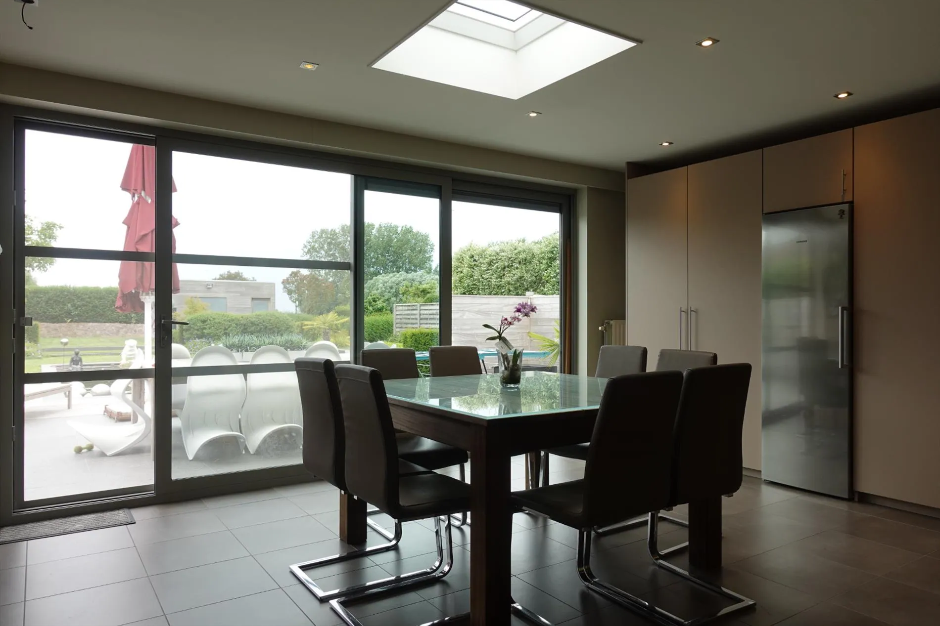 In het pittoreske dorpje Stalhille, omgeven door groen, situeert zich deze prachtige eigendom op een perceel van 1.129m². De gelijkvloerse verdieping van deze sfeervolle woning omvat een ruime inkomhal met toilet, een centrale eetplaats, de gezellige zithoek met houtkachel, de ingerichte bureauhoek, een 2e eetplaats met zicht op de prachtige achtertuin, de open keuken, een praktische wasplaats en tot slot de inpandige garage met douchevoorziening. Op de bovenverdieping bevindt er zich een zeer luchtige nachthal, de master bedroom met dressing, 2 volwaardige dubbele slaapkamers met ingemaakte kastenwanden en de recent vernieuwde badkamer met inloopdouche en 2e toilet. Verder is de ruime zolder (32,50m²) bereikbaar via een schuiftrap en werd deze momenteel ingericht als hobbykamer met stockageruimte. Om het helemaal af te maken beschikt de woning over een zuid-west-georiënteerde achtertuin die tot in de puntjes werd aangelegd. Dankzij het aangelegd terras, de prachtige zwemvijver en de achterliggende velden geniet U het hele jaar door van vakantie in eigen tuin. Aarzel niet en kom deze prachtige eigendom snel ontdekken!