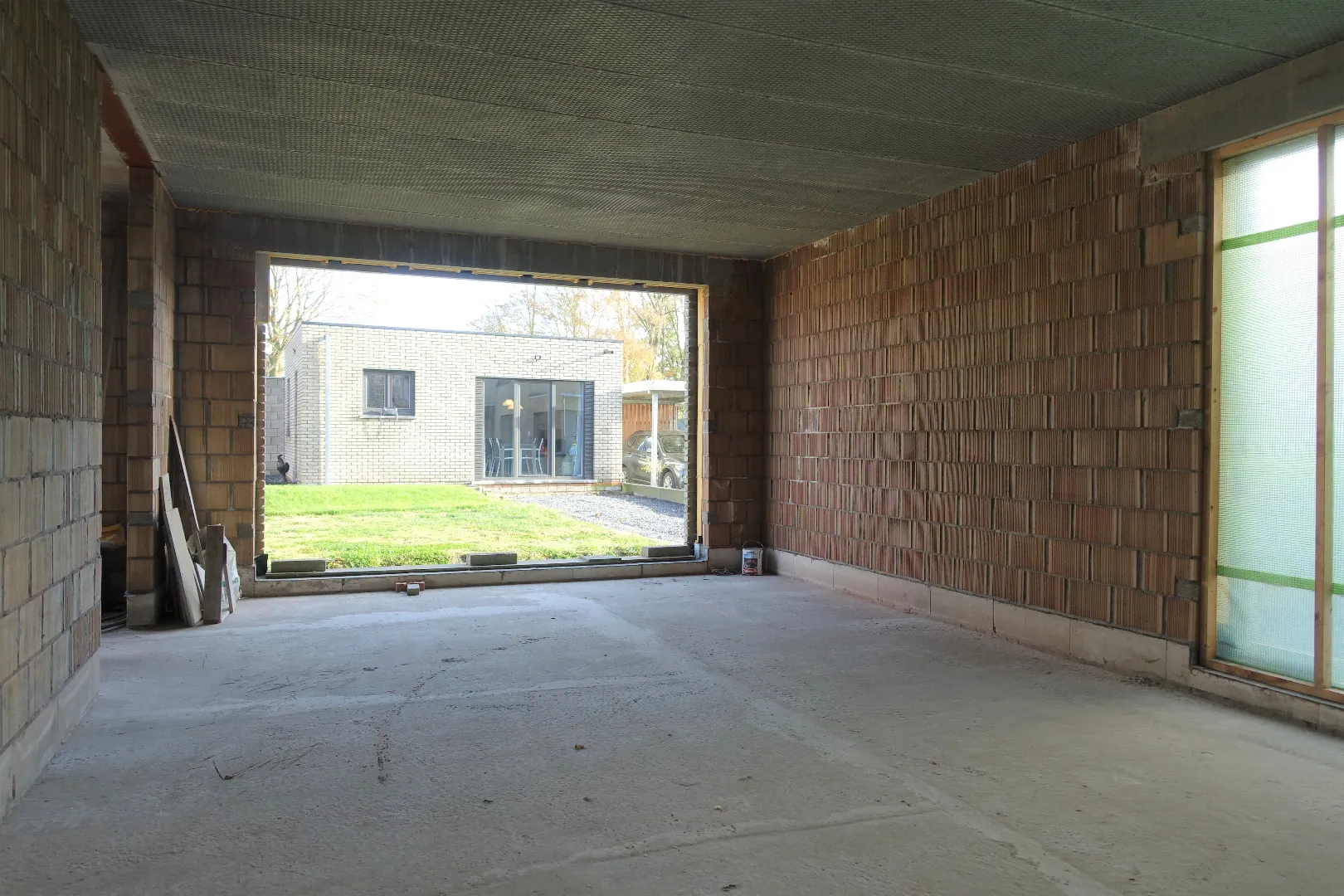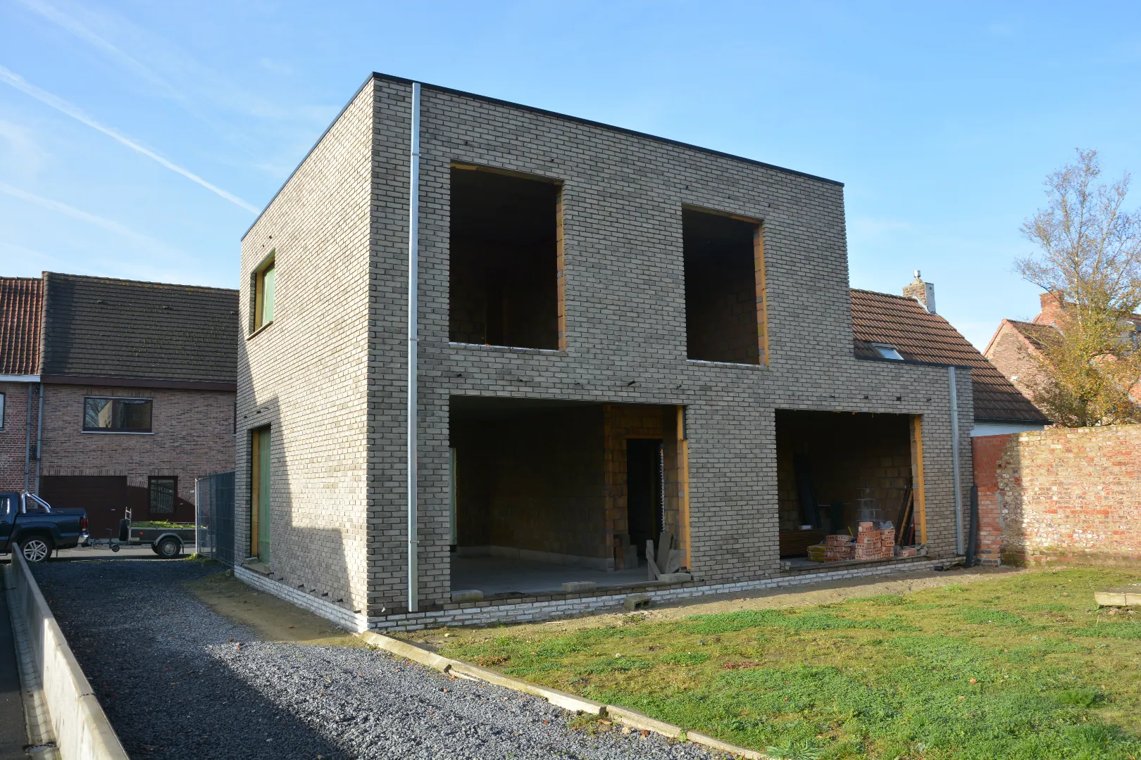 In de Leegtestraat, op wandelafstand van het centrum van Ruddervoorde en alle voorzieningen, treffen we deze strakke nieuwbouwwoning aan. De woning bevindt zich momenteel in ruwbouwstaat en wordt ingedeeld in een ruime inkomhal met apart toilet, de grote leefruimte met een overvloed aan lichtinval, de half-open keuken en de ruime aangrenzende berging/wasplaats die in verbinding staat met de carport. De 1ste verdieping is bereikbaar via de reeds gegoten trap vertrekkend uit de nachthal en biedt plaats aan een centrale nachthal met grote raampartij, de ruime badkamer en tot slot de 3 volwaardige slaapkamers. Verder beschikt de eigendom over een bijgebouw/dubbele garage die reeds afgewerkt werd en momenteel ingericht werd als studio met kitchenette en pelletkachel.
