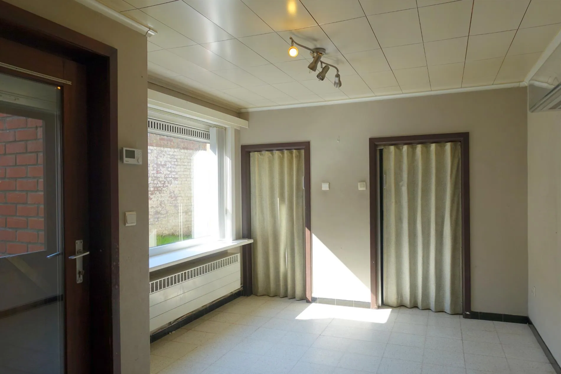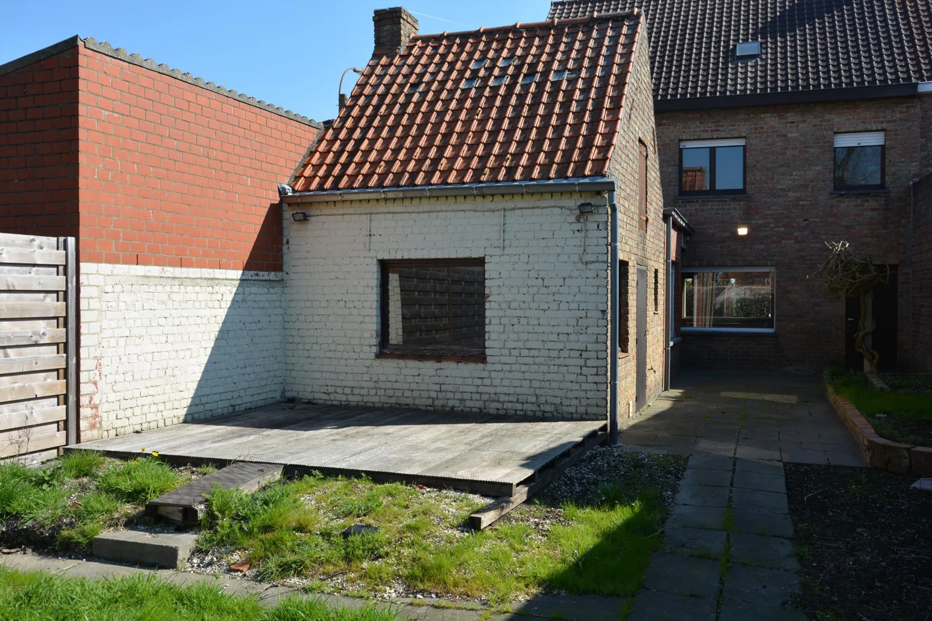 Net buiten het Dorpscentrum van Eernegem, treffen we deze statige rijwoning aan op een perceel van 329m². De woning wordt samengesteld uit een luchtige inkomhal, een lichtrijke en gezellige leefruimte, een aparte leefkeuken, een apart toilet en de badkamer. De 1ste verdieping bereiken we via de trap vertrekkend uit de inkomhal en biedt plaats aan een centrale nachthal en 3 zéér ruime slaapkamers. De ruime geïsoleerde zolder is bereikbaar via de vaste trap vanuit de nachthal. Verder geniet deze woning van een zéér ruime berging/wasplaats en een zonnige achtertuin met uitweg. De woning is reeds in '16-'17 uitgerust met een nieuwe CV-ketel op aardgas en beschikt overal over dubbele beglazing met rolluiken. Mogelijkheid tot huren van een garagebox in de buurt. Neem snel contact op met ons kantoor en breng een bezoek aan deze leuke woonst! (3D-afbeeldingen zijn louter ter illustratie)